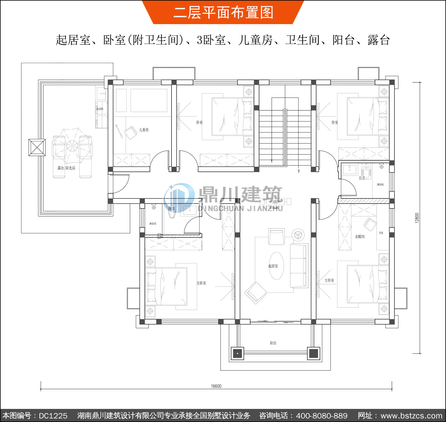 | 二 層: | 起居室、臥室(附衛生間)、3臥室、兒童房、衛生間、陽臺、露臺 | |||