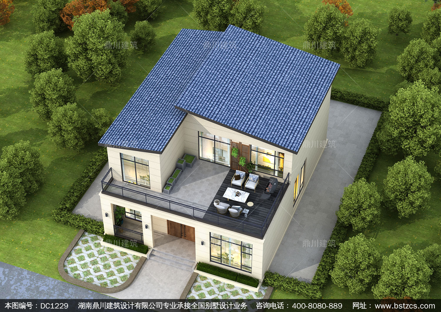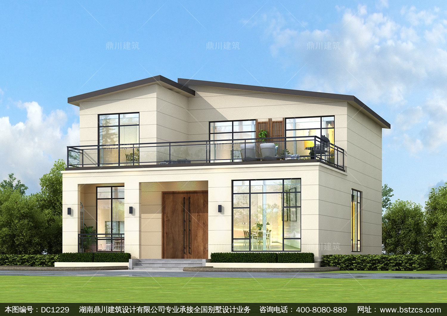 簡約二層帶露臺別墅圖紙及效果圖_農村自建別墅設計,鼎川建筑