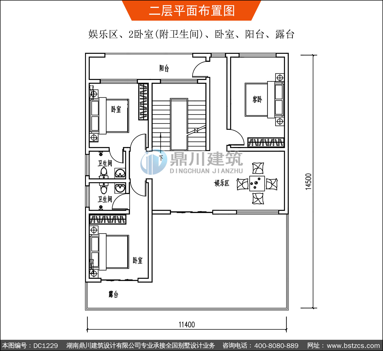 | 二 層: | 娛樂區、2臥室(附衛生間)、臥室、陽臺、露臺 | |||
