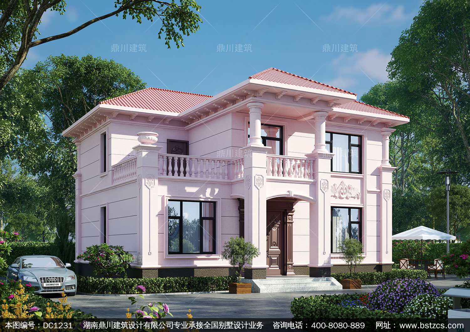 歐式二層帶露臺實用別墅施工圖紙及效果圖_農村自建房設計,鼎川