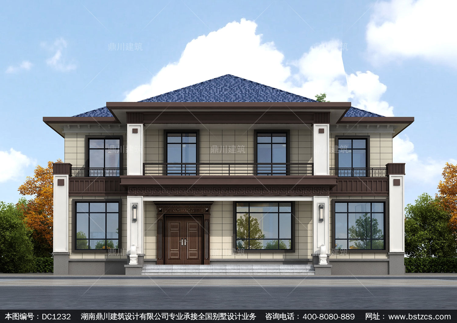 新中式二層別墅施工圖紙及效果圖_農村自建別墅設計,鼎川建筑