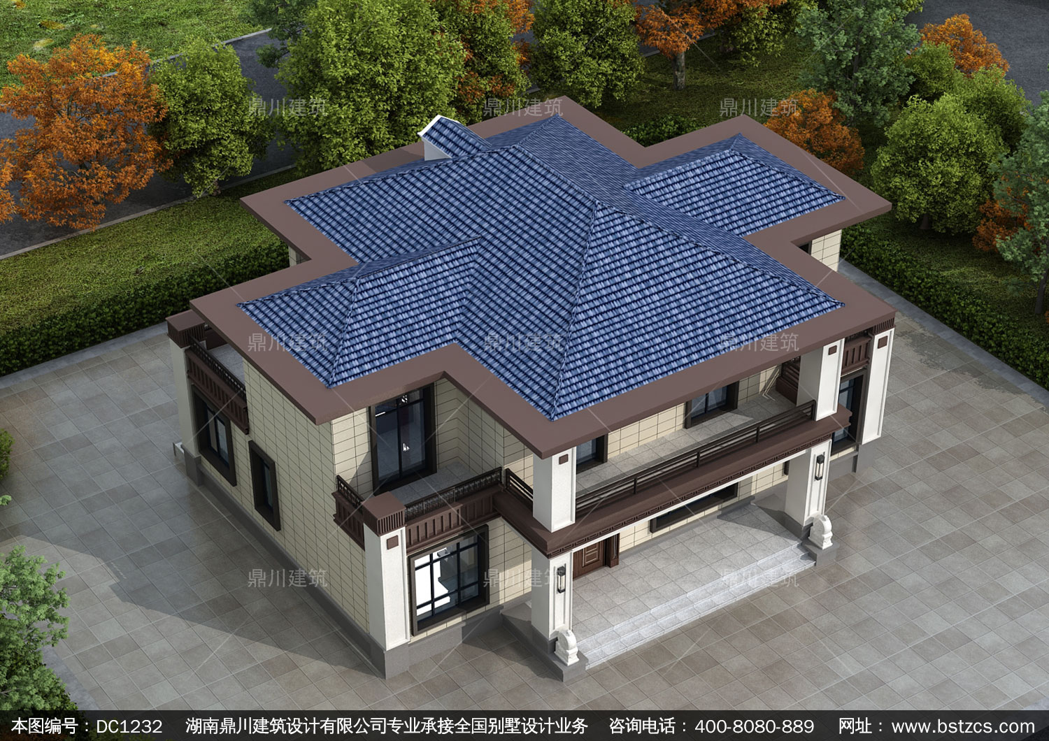 新中式二層帶柴火房別墅圖紙及效果圖_農村自建別墅設計,鼎川建
