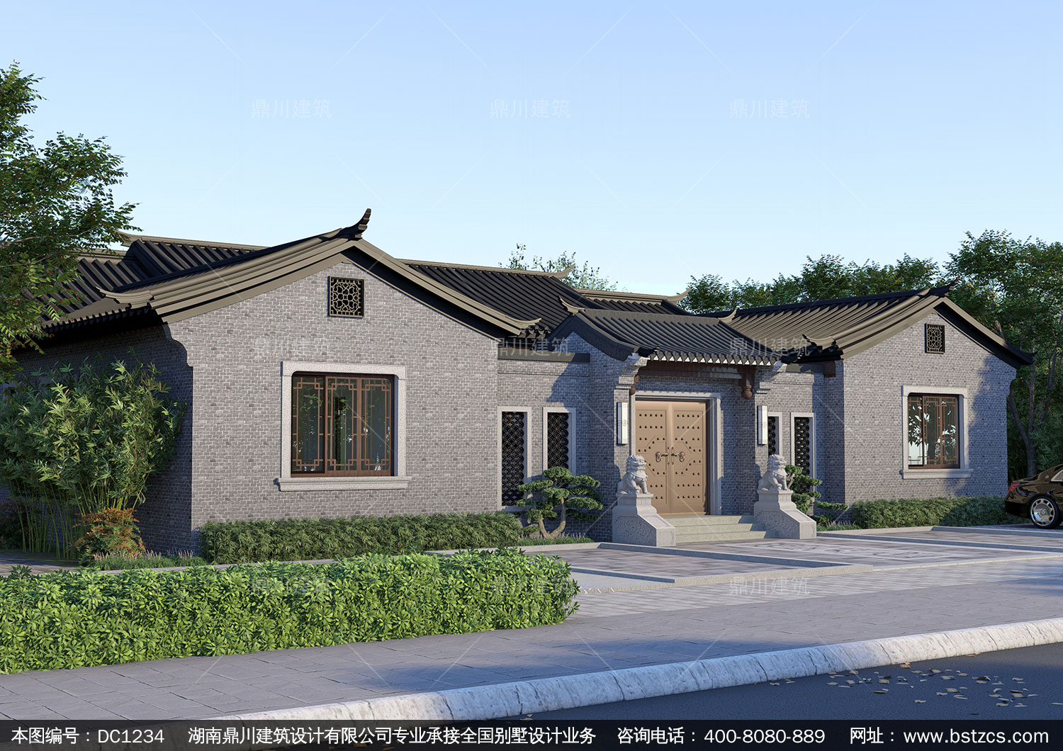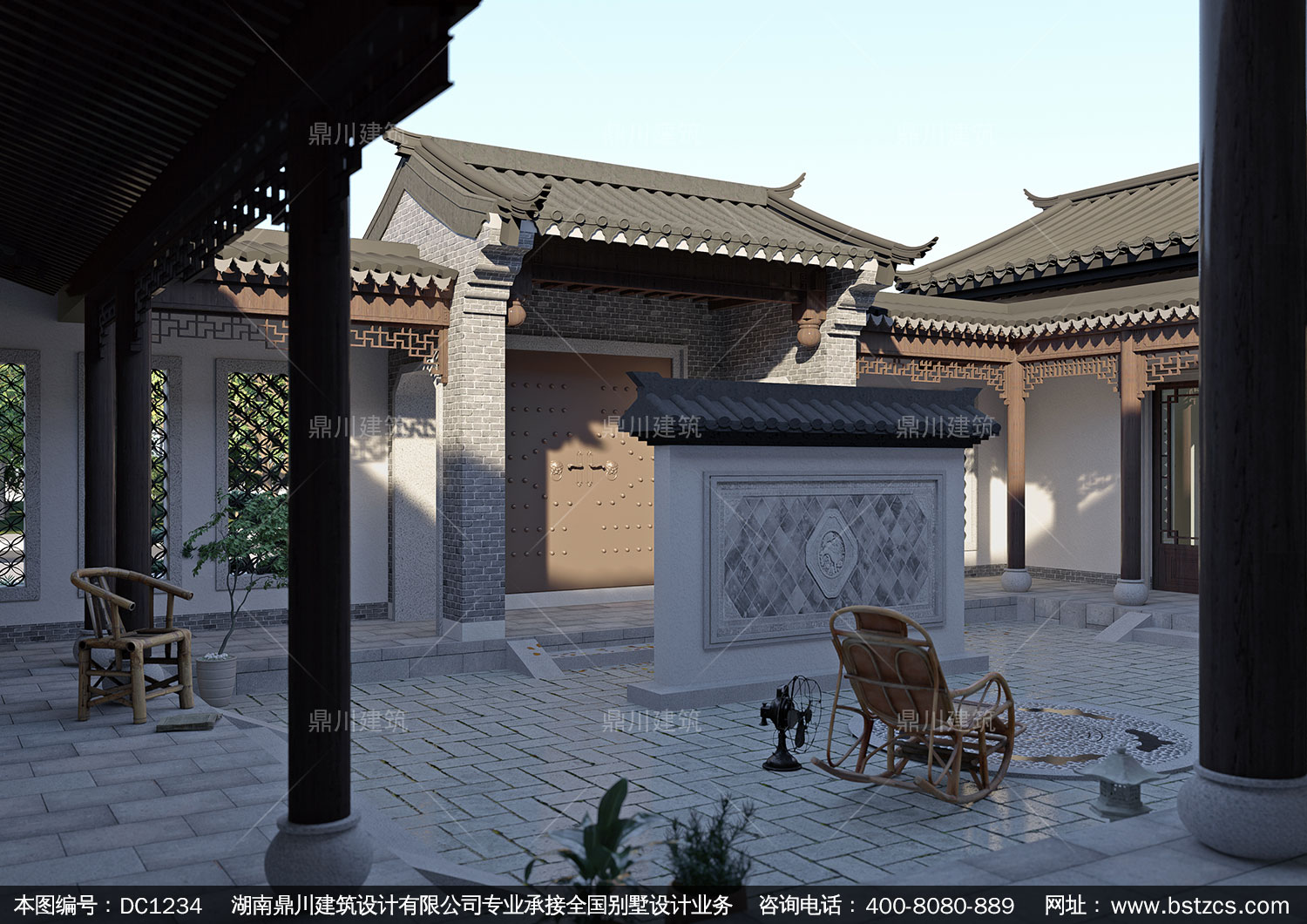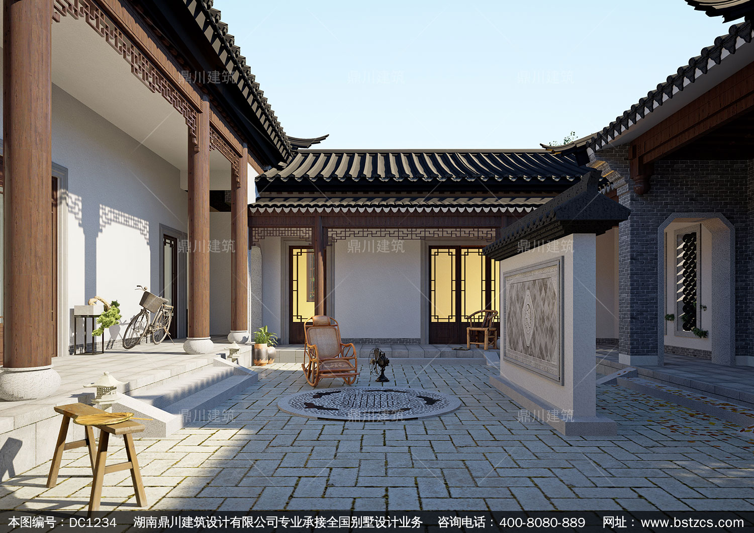 中式一層合院施工圖紙及效果圖_新農村一層自建別墅設計,鼎川建