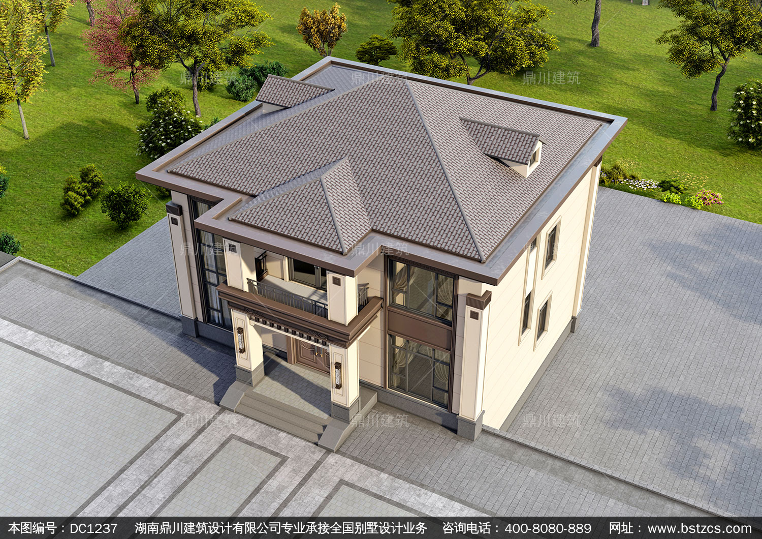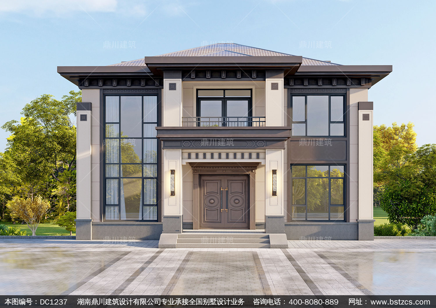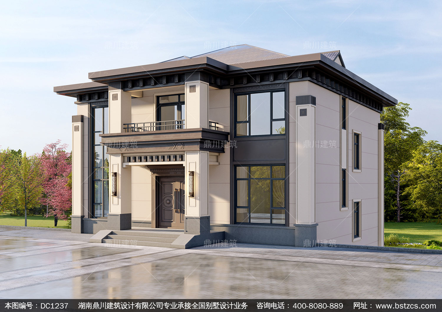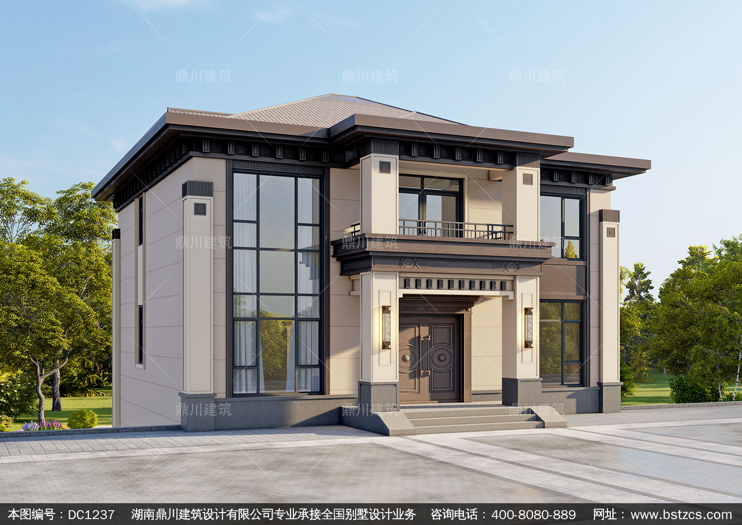 新中式二層別墅圖紙及效果圖_農村自建別墅設計,鼎川建筑