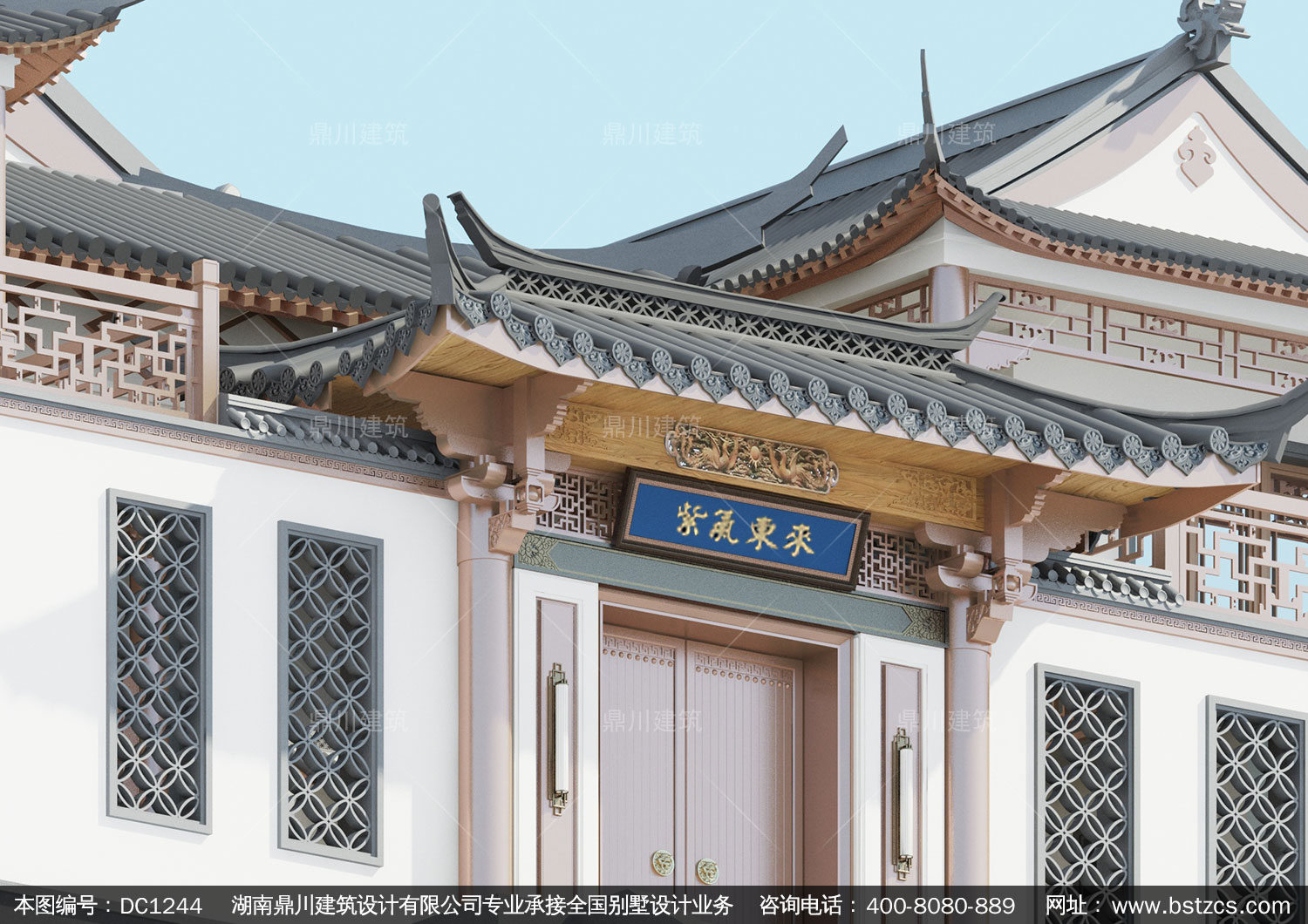 新中式二層帶內院別墅施工圖紙及效果圖_農村三合院設計,鼎川建