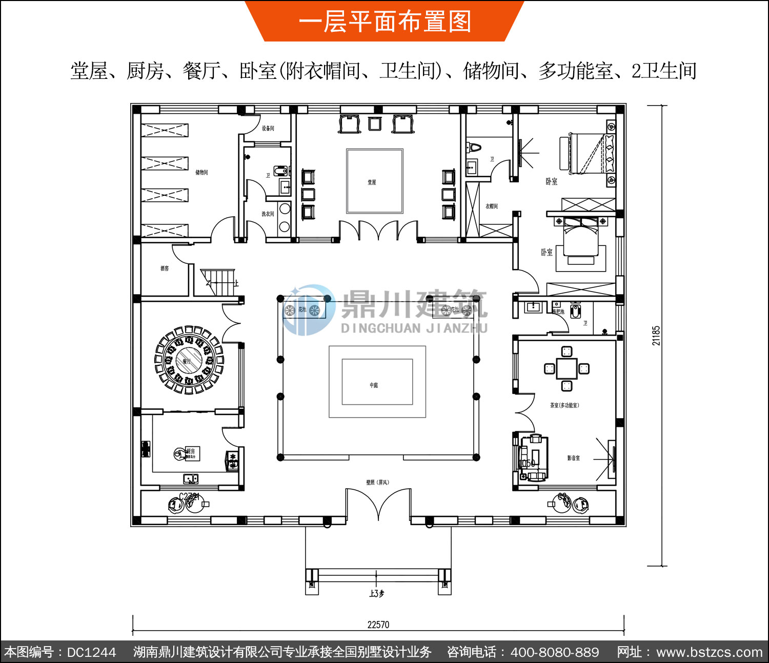 | 一 層: | 堂屋、廚房、餐廳、臥室(附衣帽間、衛生間)、儲物間、多功能室、2衛生間 | |||