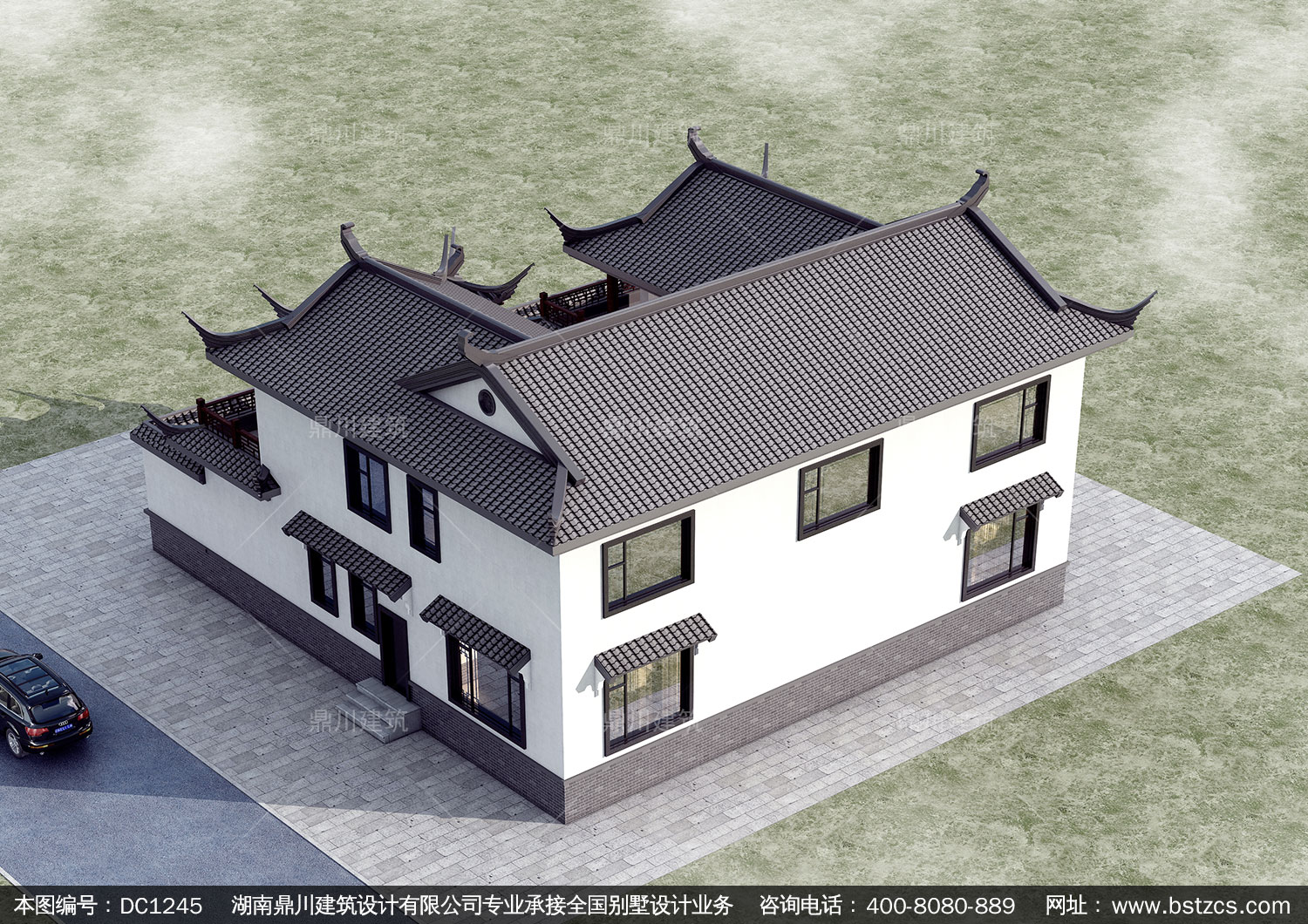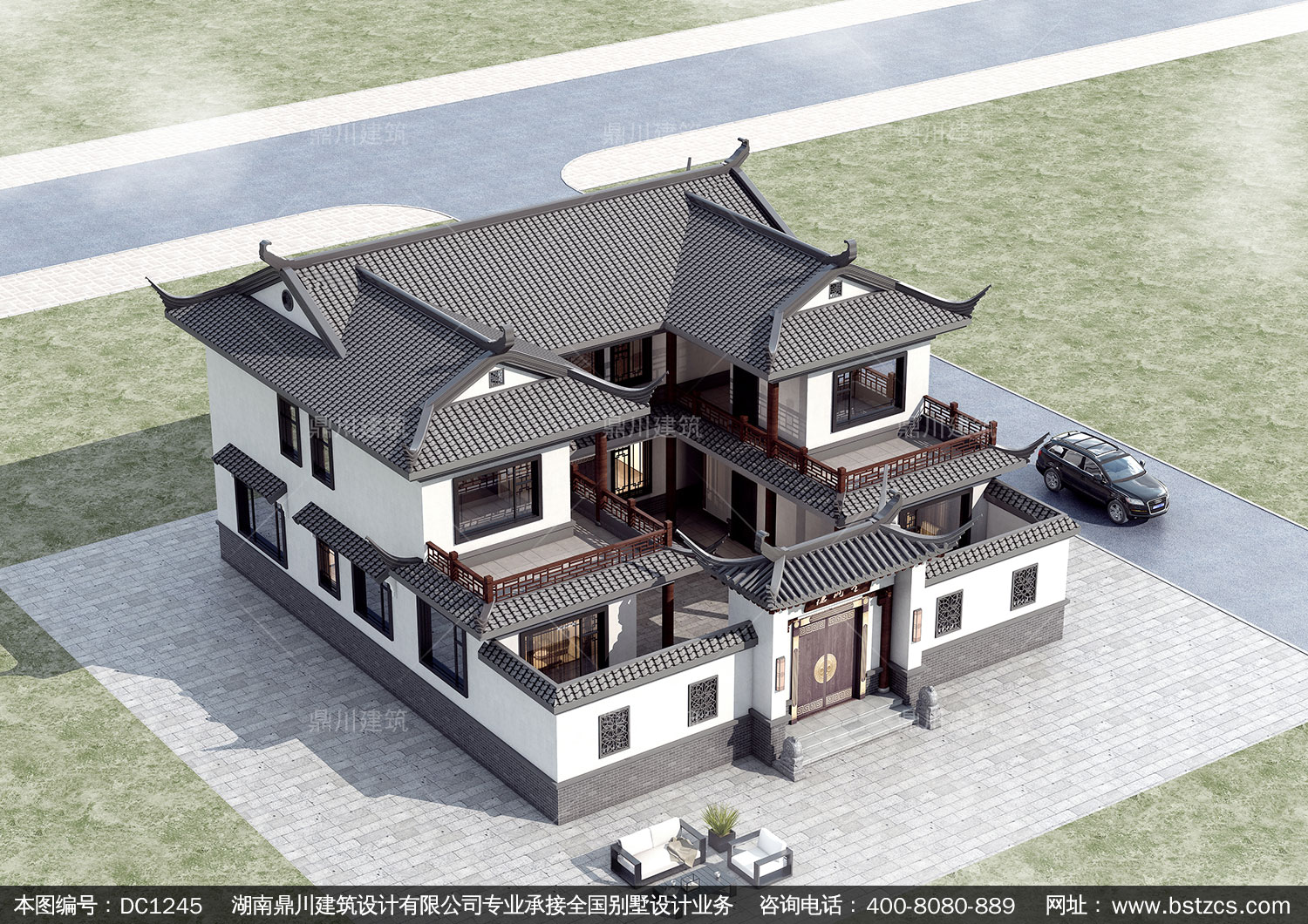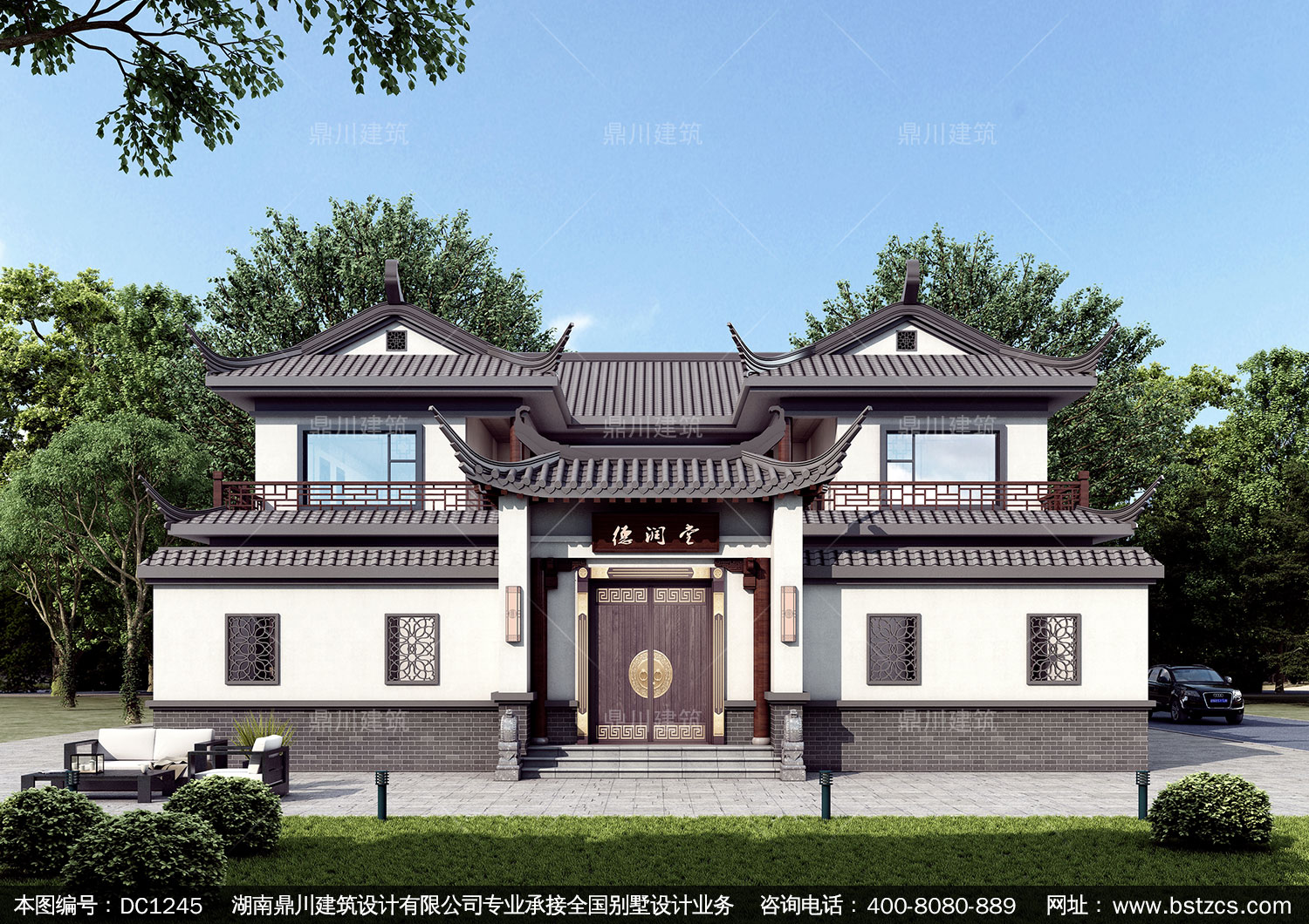 中式二層別墅施工圖紙及效果圖_農村自建別墅設計,鼎川建筑