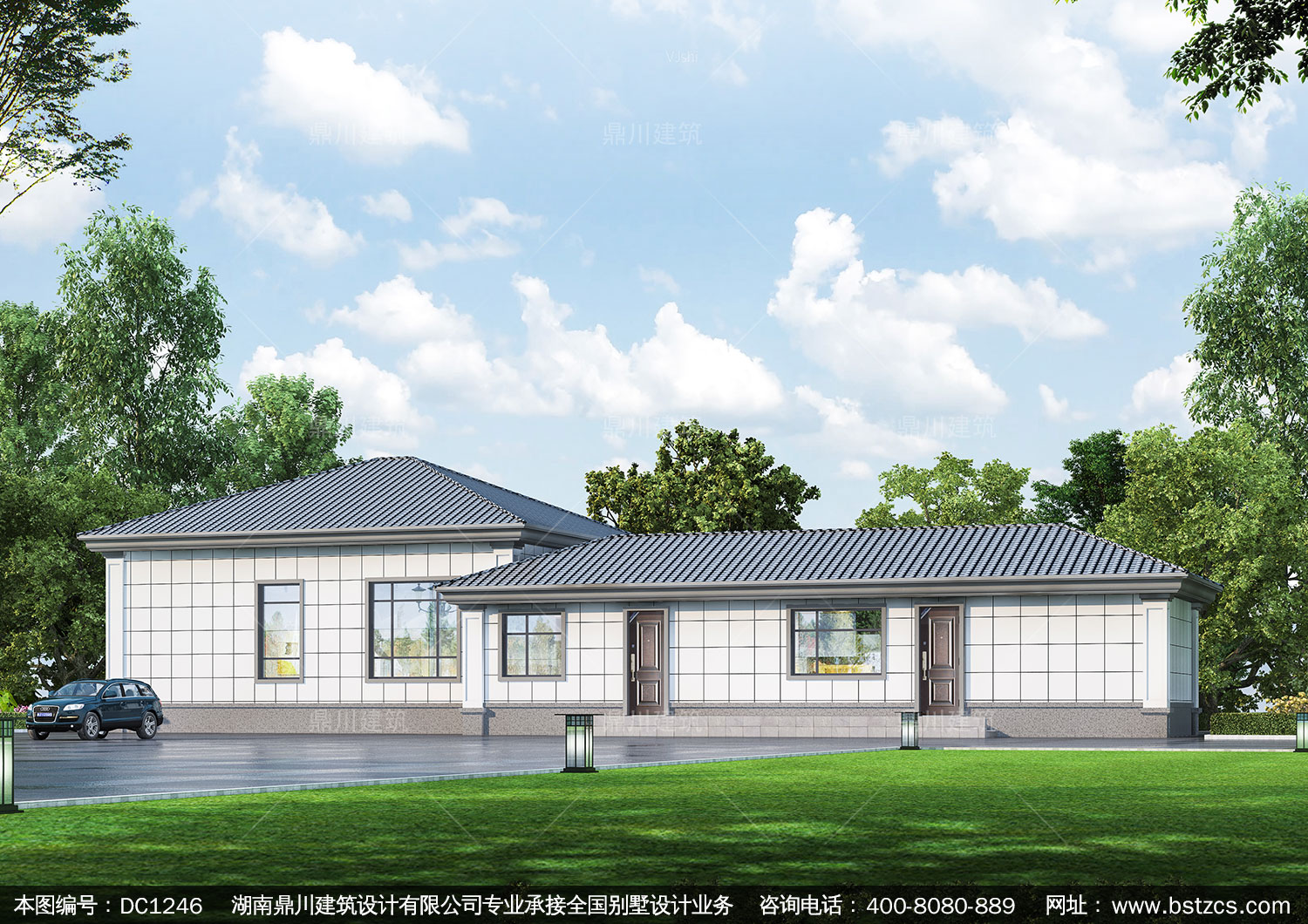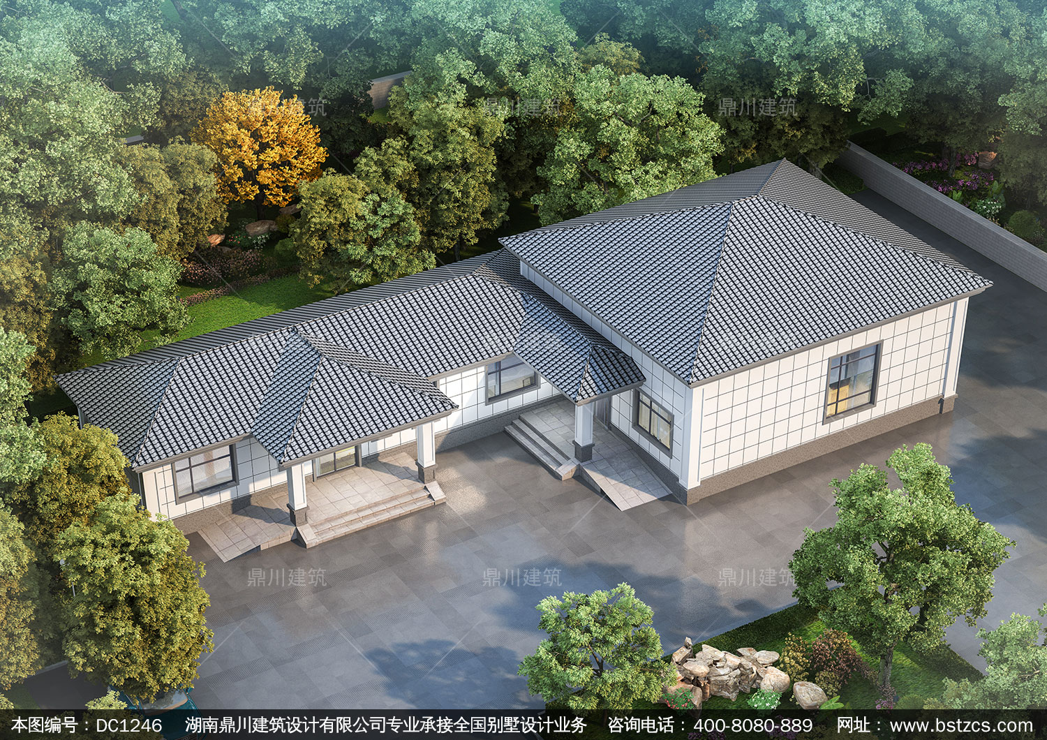 新中式一層別墅施工圖紙及效果圖_農村自建別墅設計,鼎川建筑