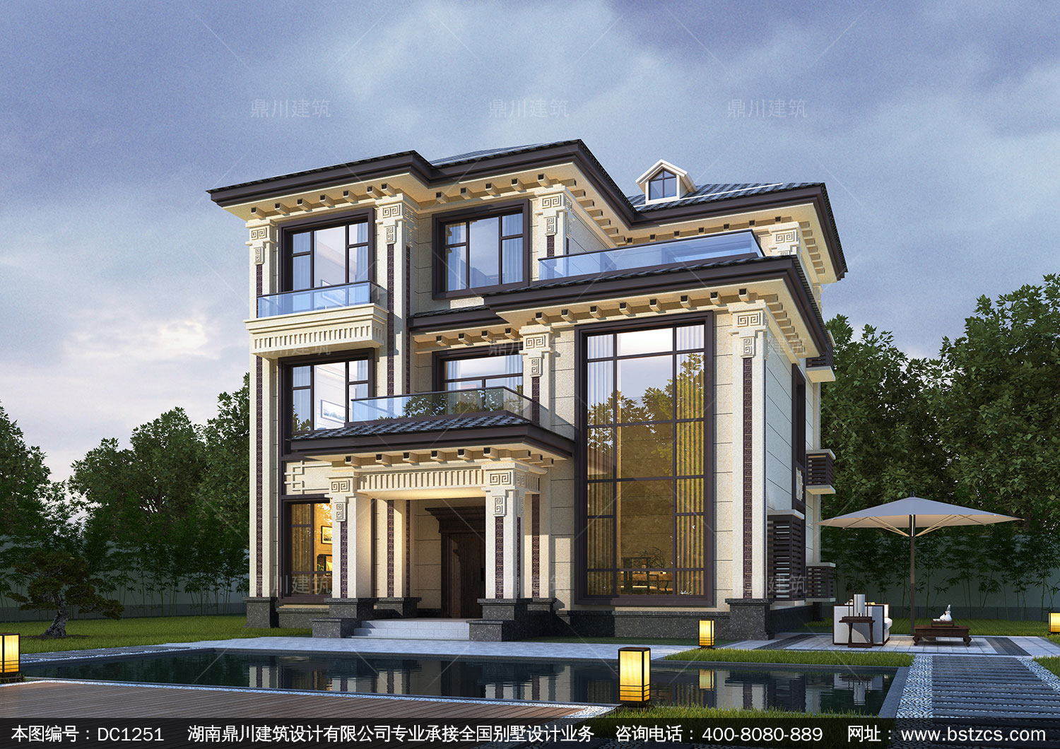 新中式三層復式別墅圖紙及效果圖_新農村自建別墅設計,鼎川建筑