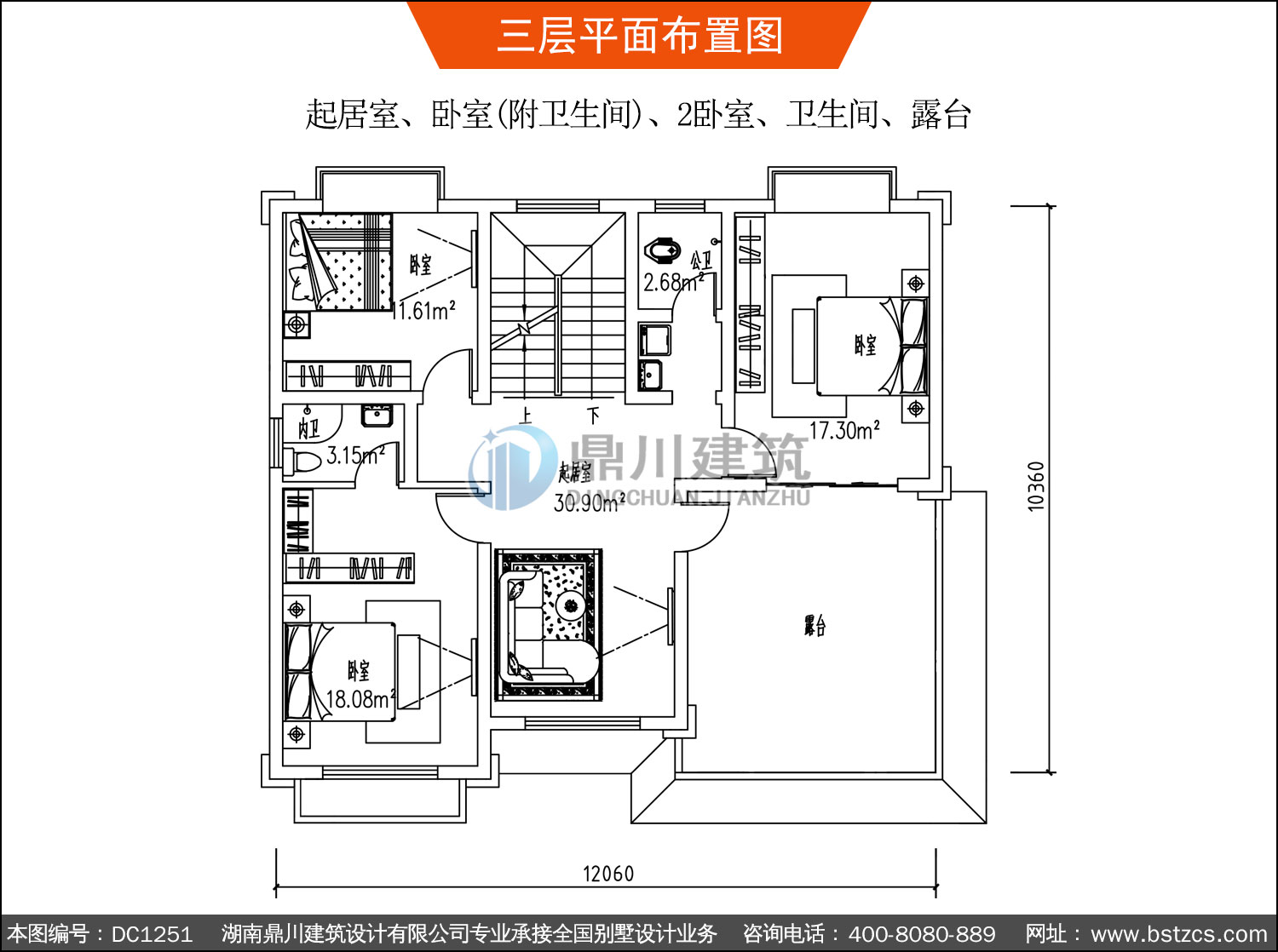 新中式三層復式別墅施工圖紙及效果圖_農村自建別墅設計,鼎川建