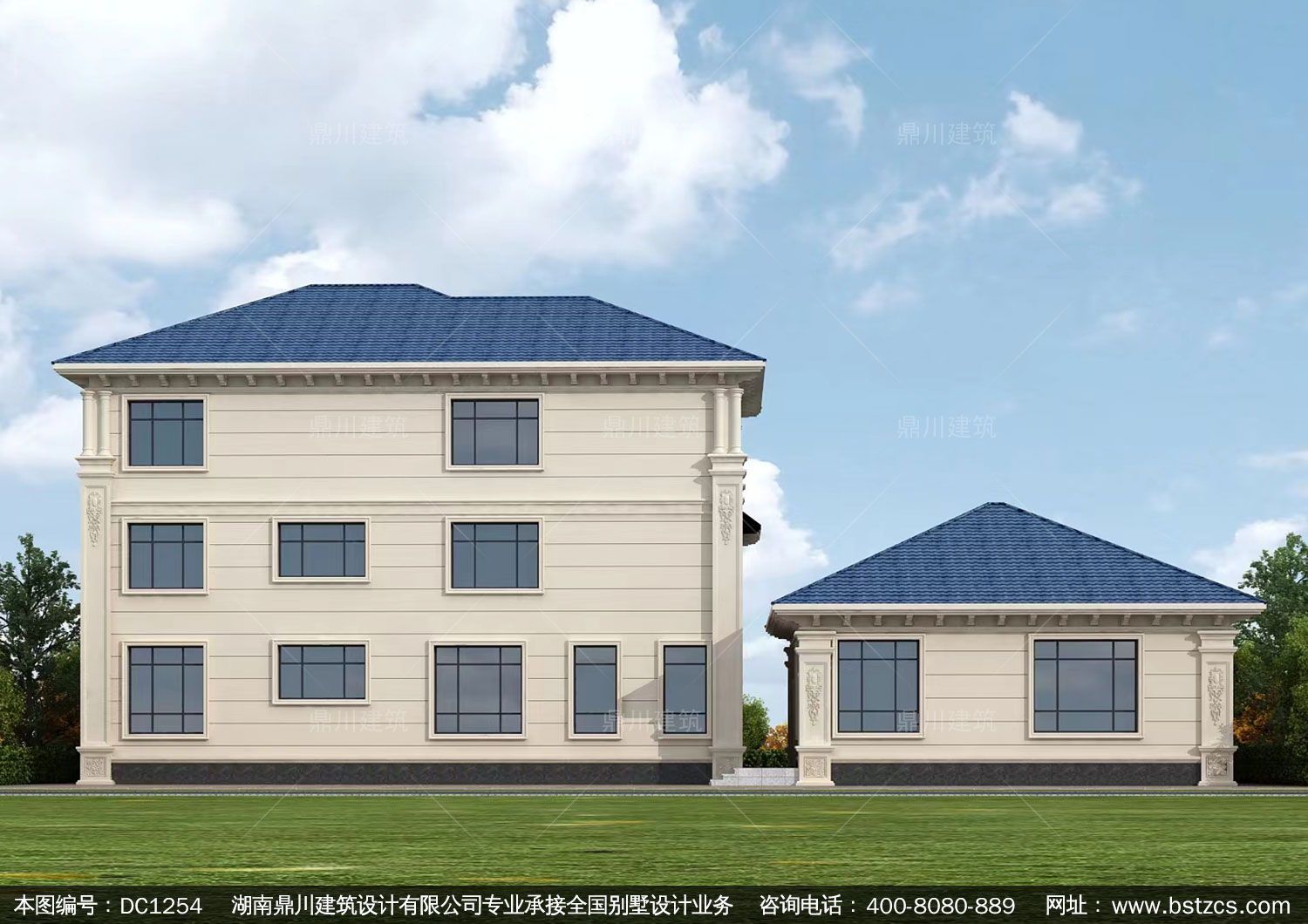 三層簡歐帶車庫別墅圖紙及效果圖_新農村自建別墅設計,鼎川建筑