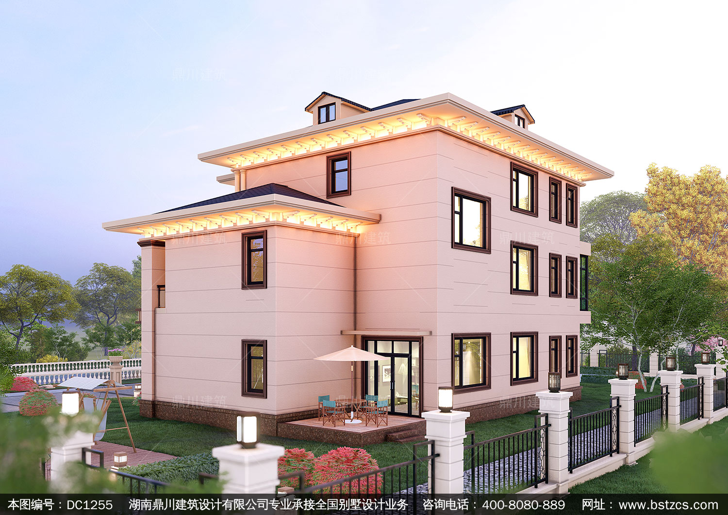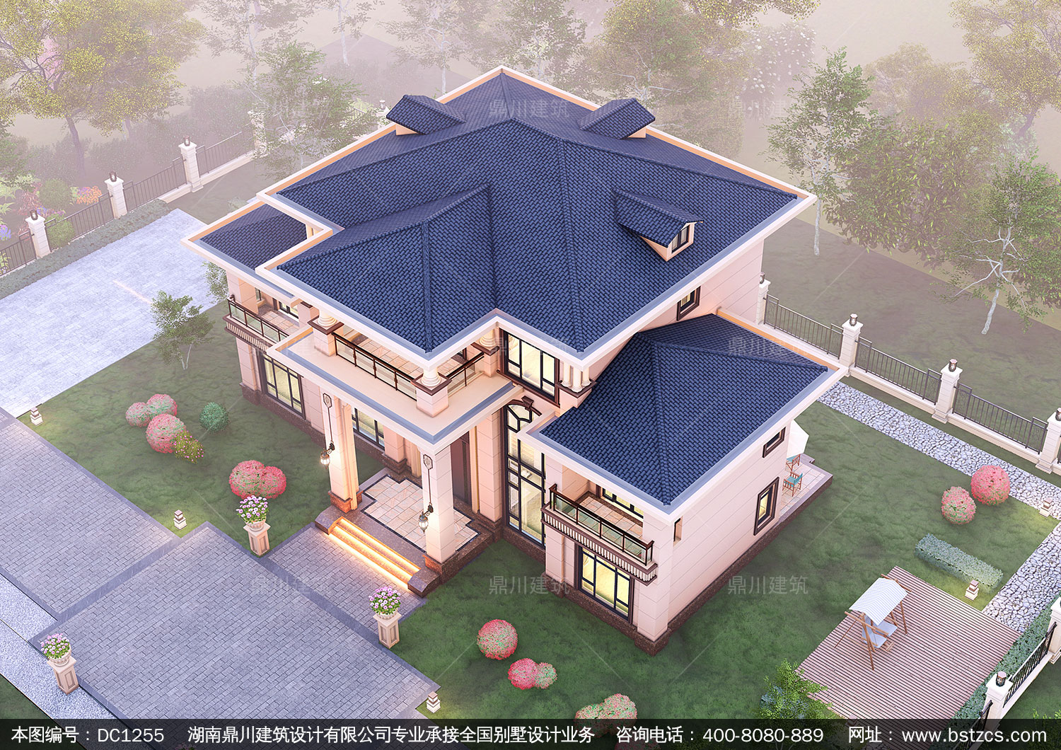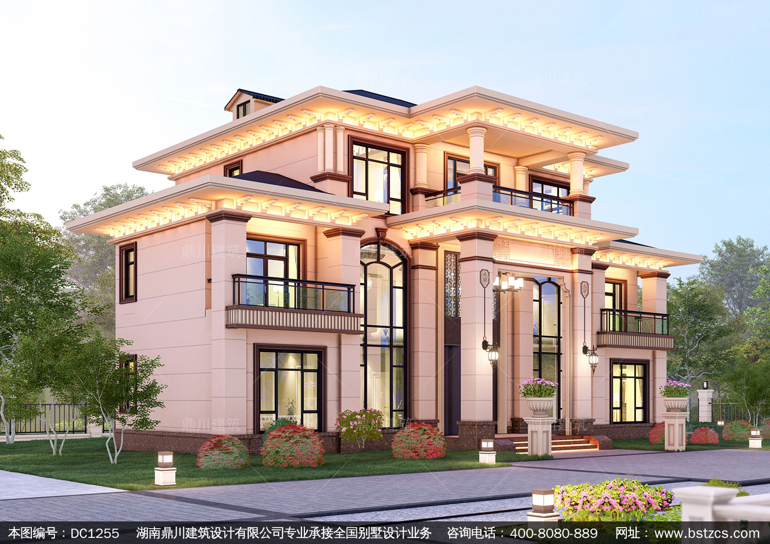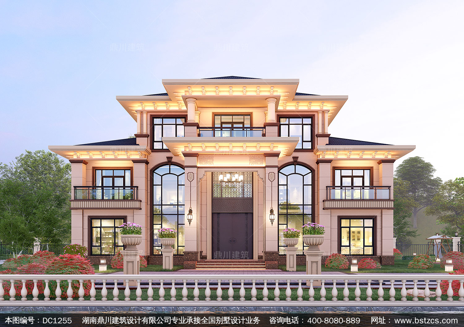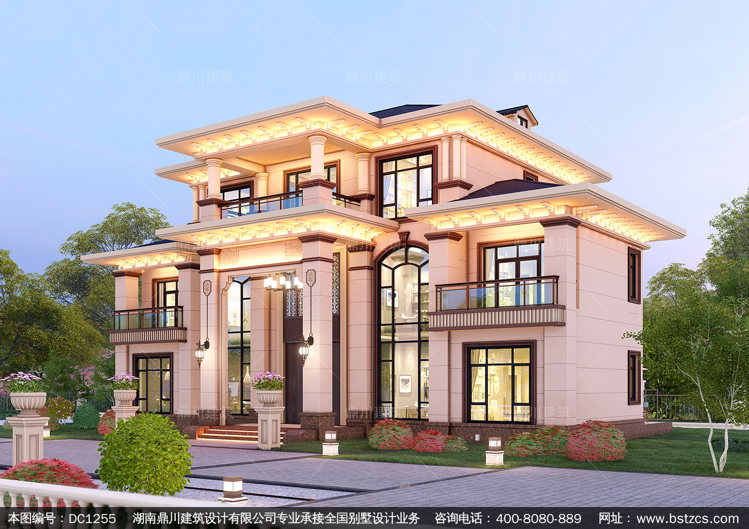 大氣新中式三層復式別墅圖紙及效果圖_農村自建別墅設計,鼎川建