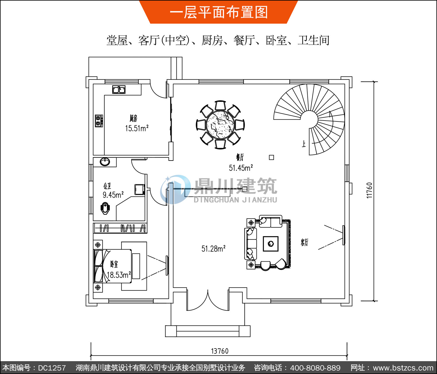 | 一 層: | 堂屋、客廳(中空)、廚房、餐廳、臥室、衛生間 | |||