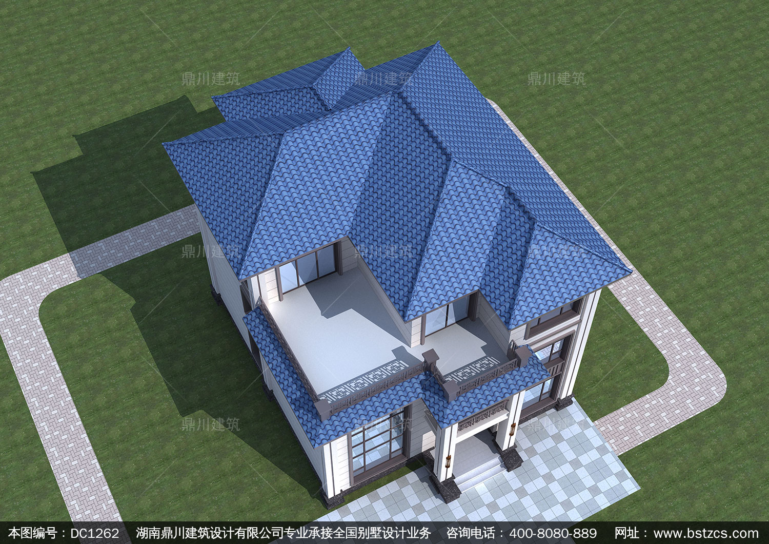 三層新中式別墅全套圖紙及效果圖_新農村自建別墅設計,鼎川建筑