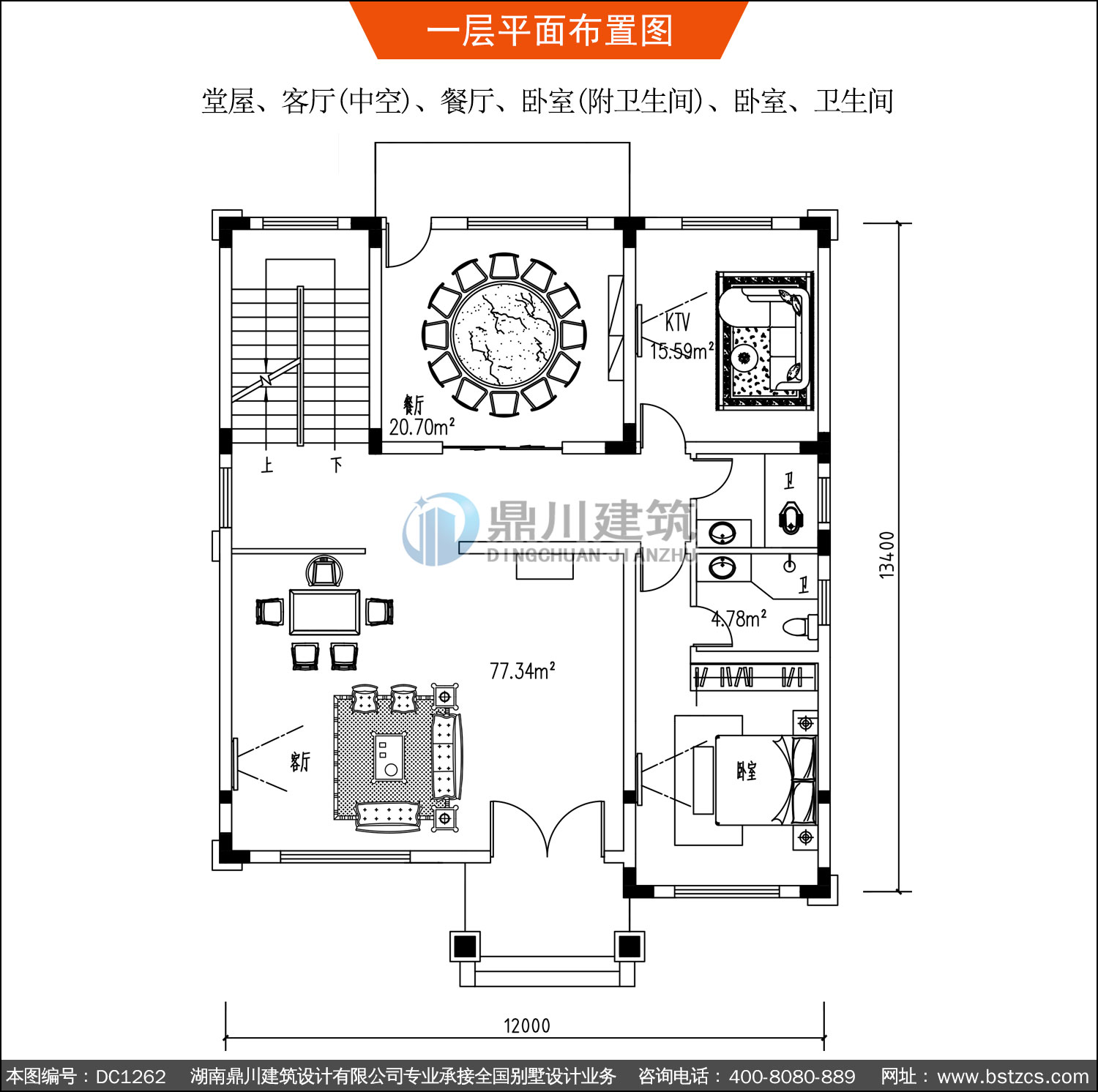 | 一 層: | 堂屋、客廳(中空)、餐廳、臥室(附衛生間)、臥室、衛生間 | |||