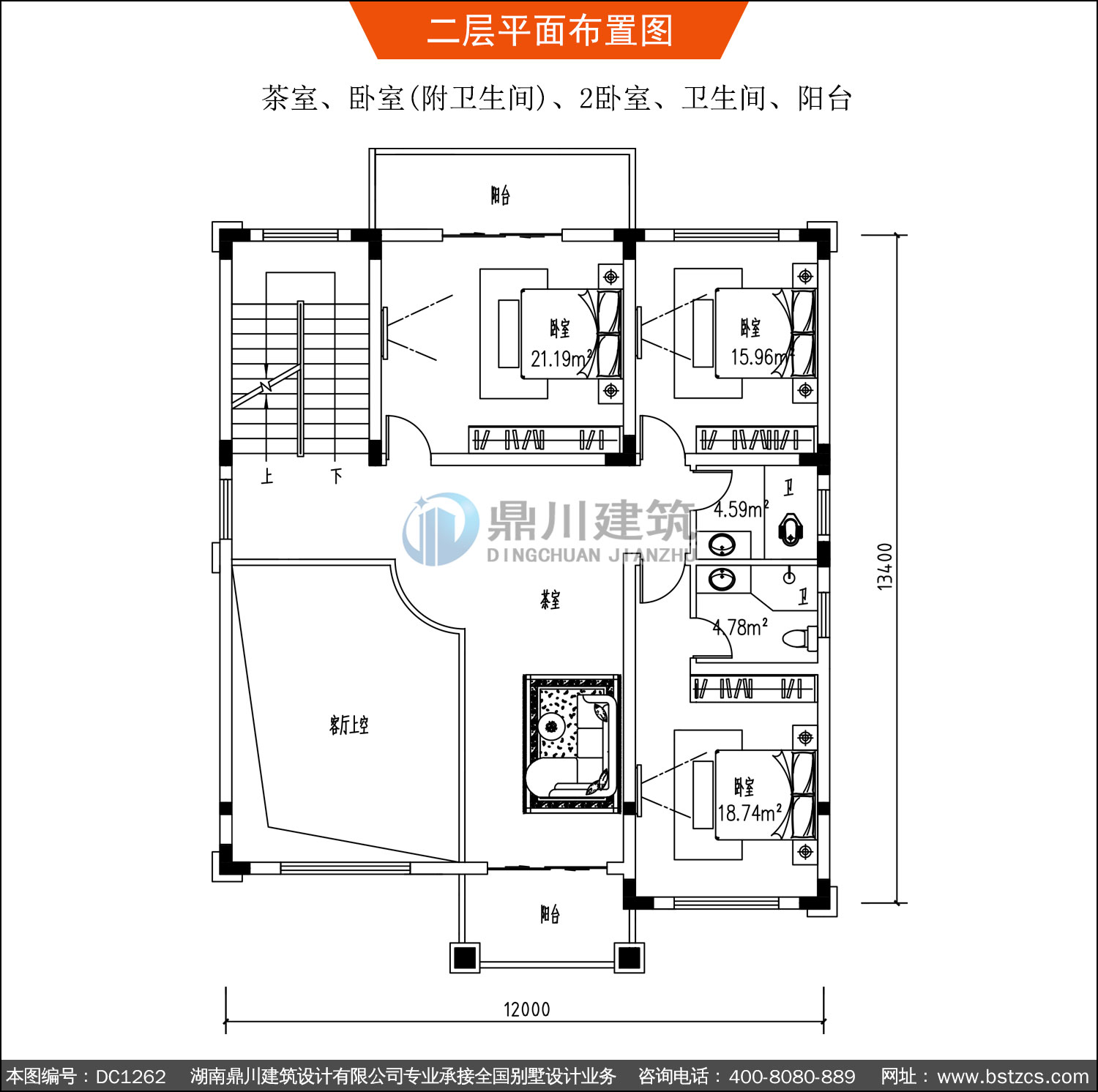 | 二 層: | 茶室、臥室(附衛生間)、2臥室、衛生間、陽臺 | |||