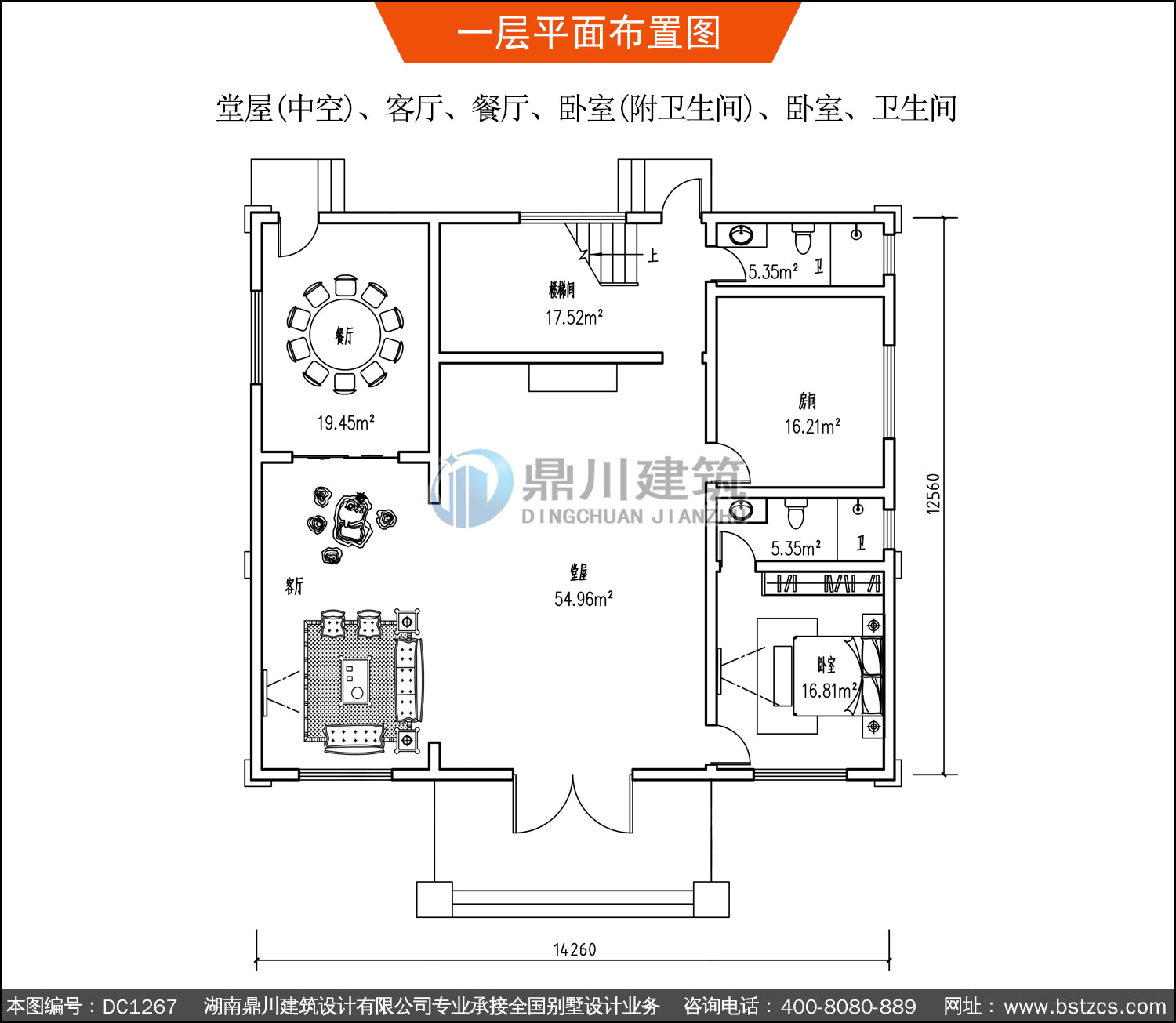 | 一 層: | 堂屋(中空)、客廳、餐廳、臥室(附衛(wèi)生間)、臥室、衛(wèi)生間 | |||