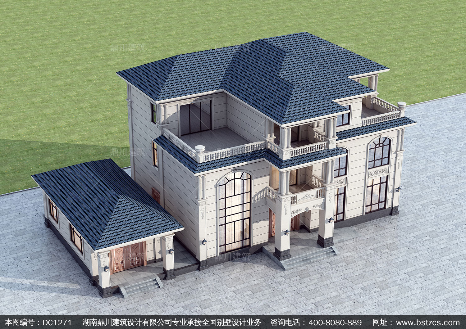 歐式三層帶車庫別墅施工圖紙及效果圖_農村自建別墅設計,鼎川建
