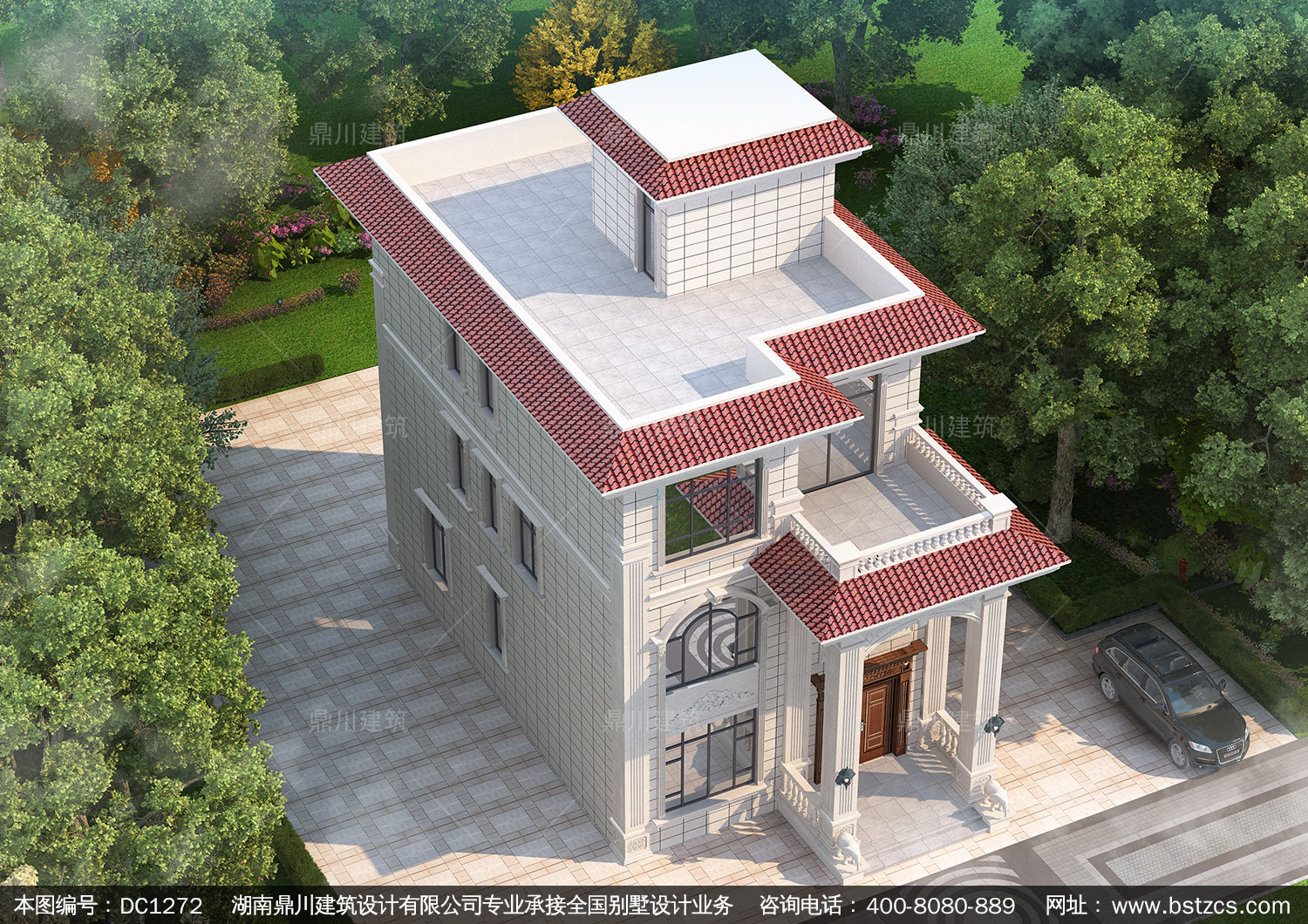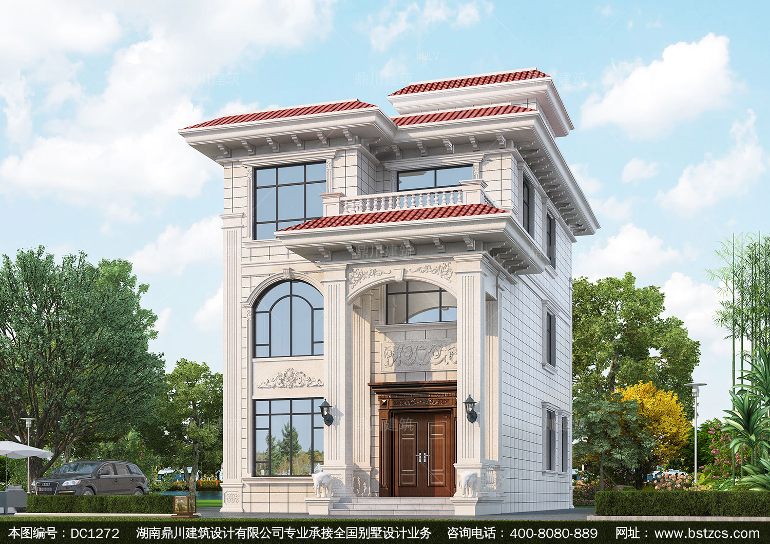 三層簡歐帶露臺小戶型別墅圖紙及效果圖_農村自建房設計,鼎川建