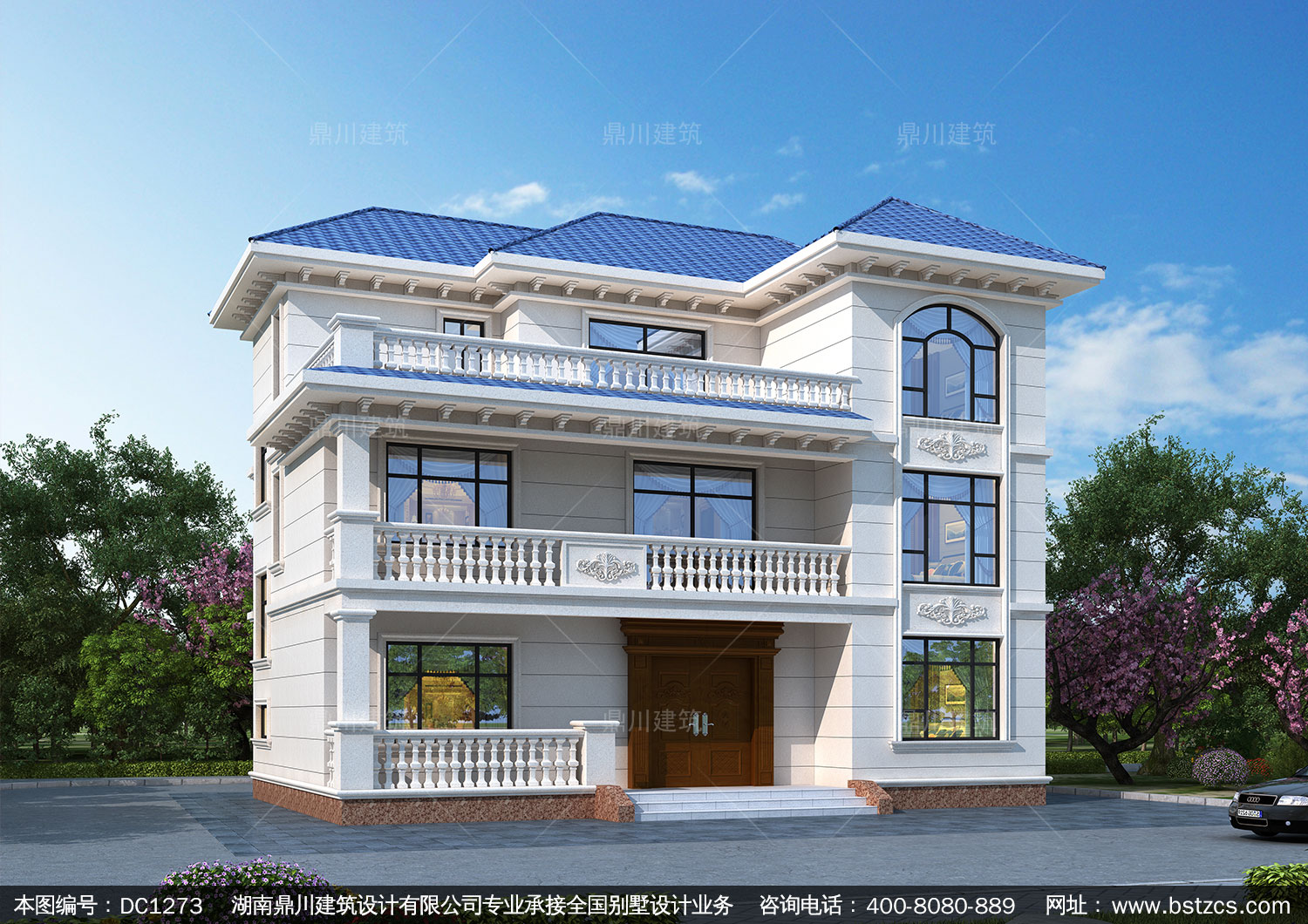 歐式三層帶旋轉樓梯別墅圖紙及效果圖_新農村自建別墅設計,鼎川