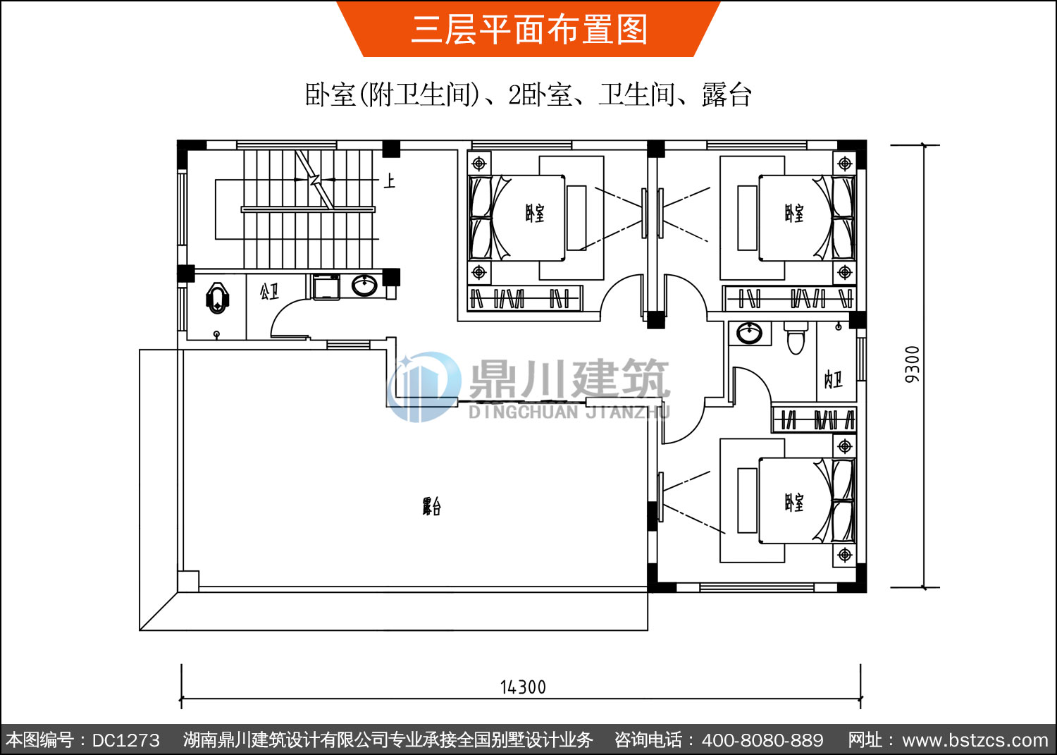 | 三 層: | 臥室(附衛生間)、2臥室、衛生間、露臺 | |||