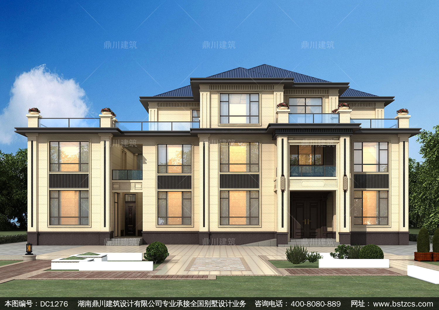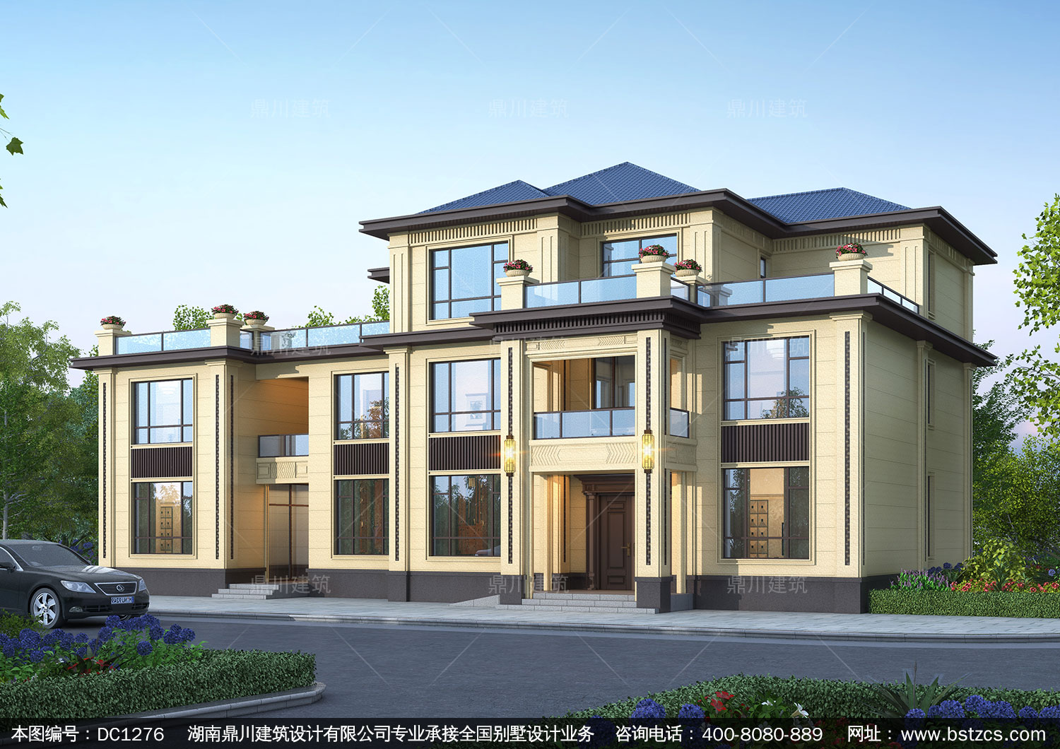 大氣三層新中式別墅施工圖紙及效果圖_農村自建別墅設計,鼎川建