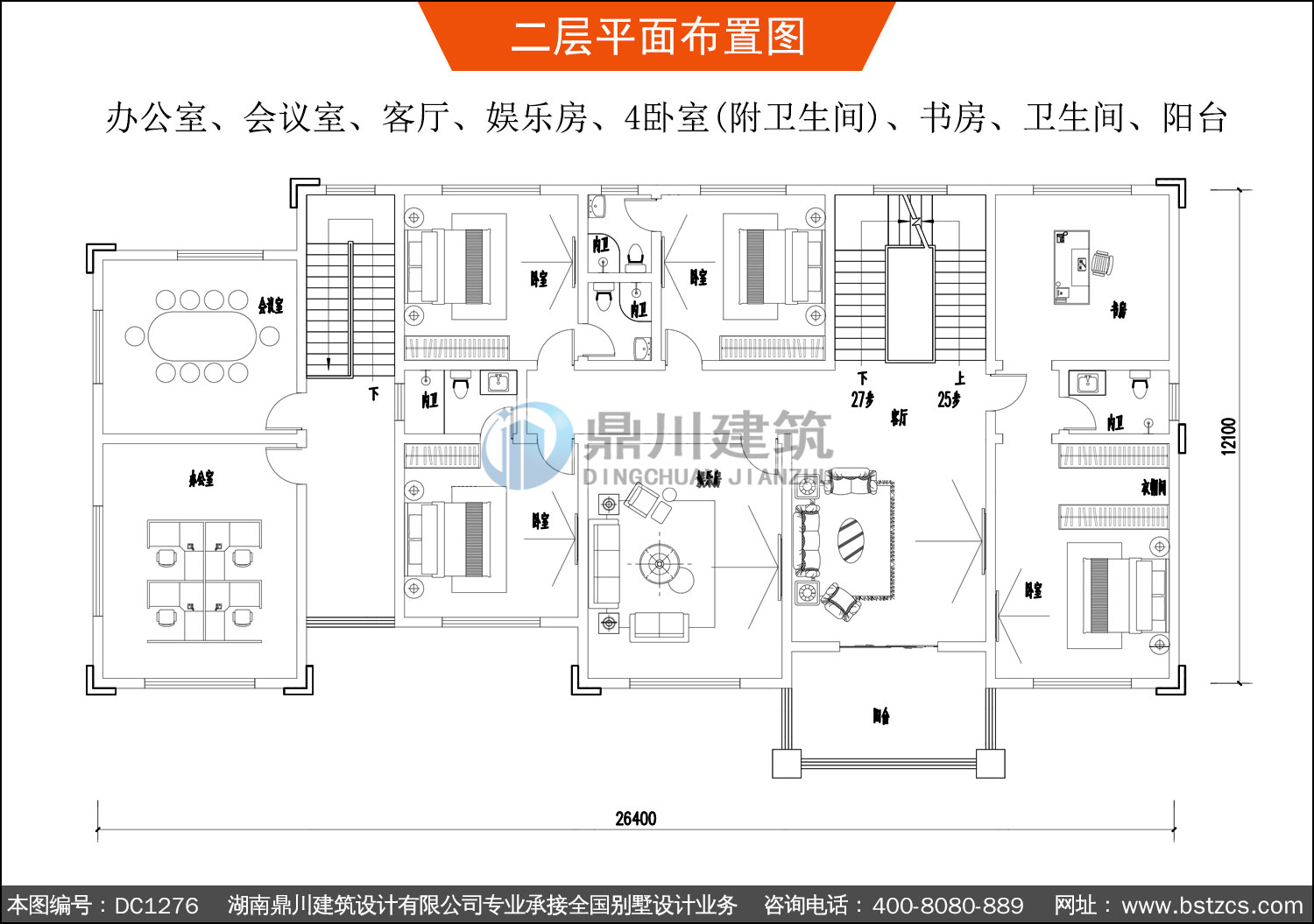 | 二 層: | 辦公室、會議室、客廳、娛樂房、4臥室(附衛生間)、書房、衛生間、陽臺 | |||