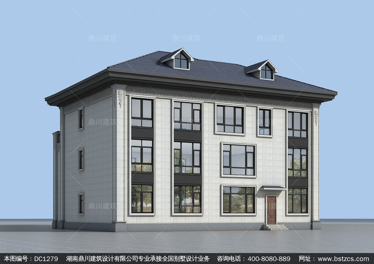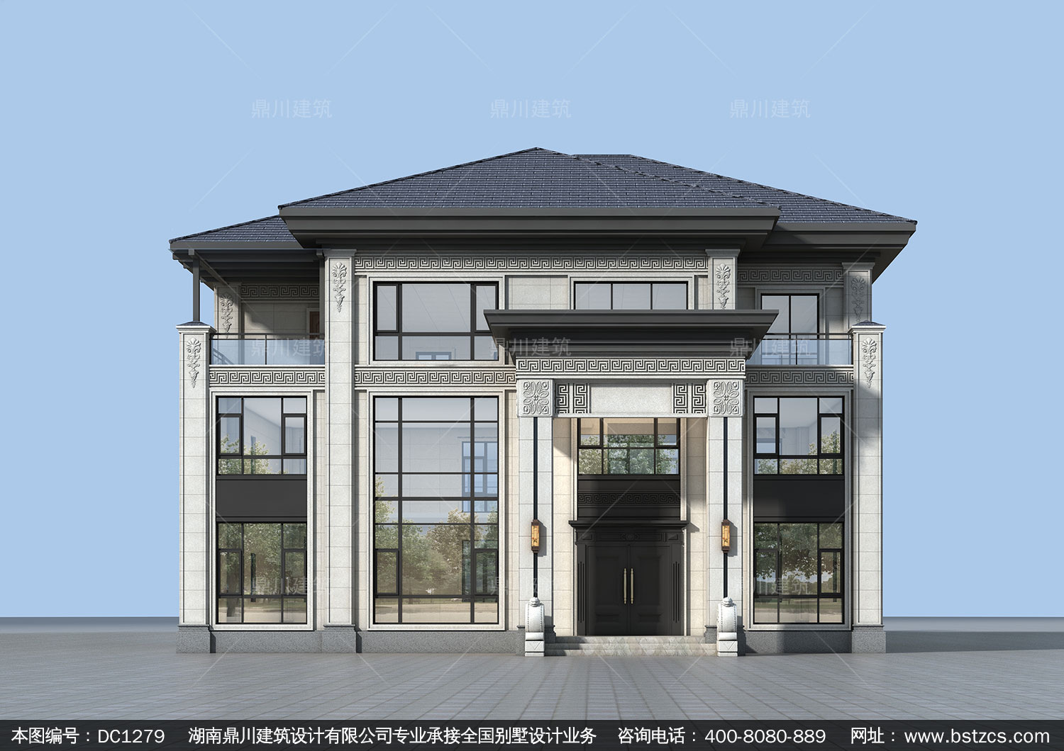 新中式三層復(fù)式別墅施工圖紙及效果圖_農(nóng)村自建別墅設(shè)計,鼎川建筑