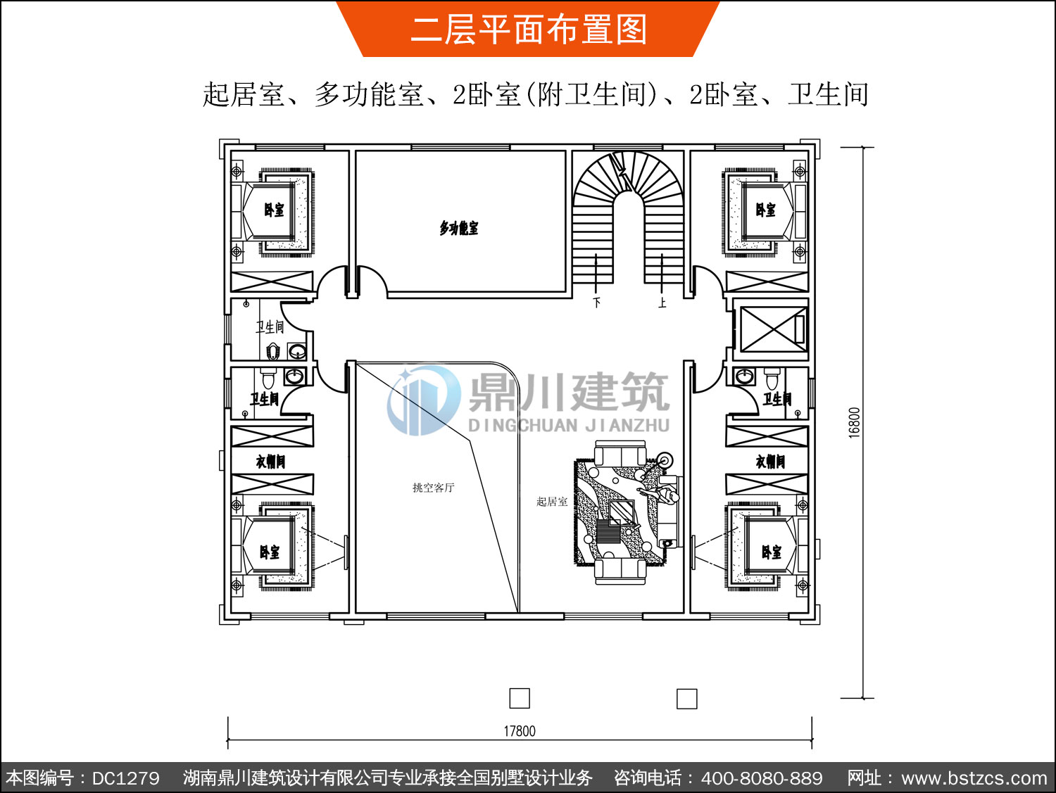 | 二 層: | 起居室、多功能室、2臥室(附衛(wèi)生間)、2臥室、衛(wèi)生間 | |||