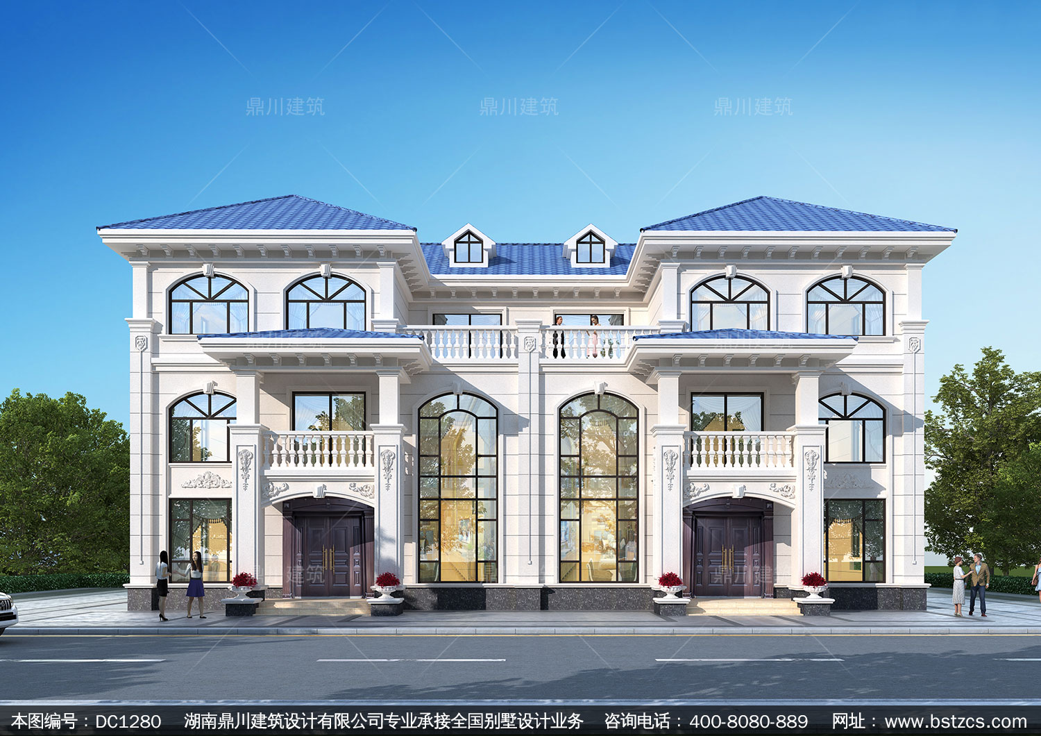 歐式三層雙拼別墅圖紙及外觀效果圖_新農村自建別墅設計,鼎川建