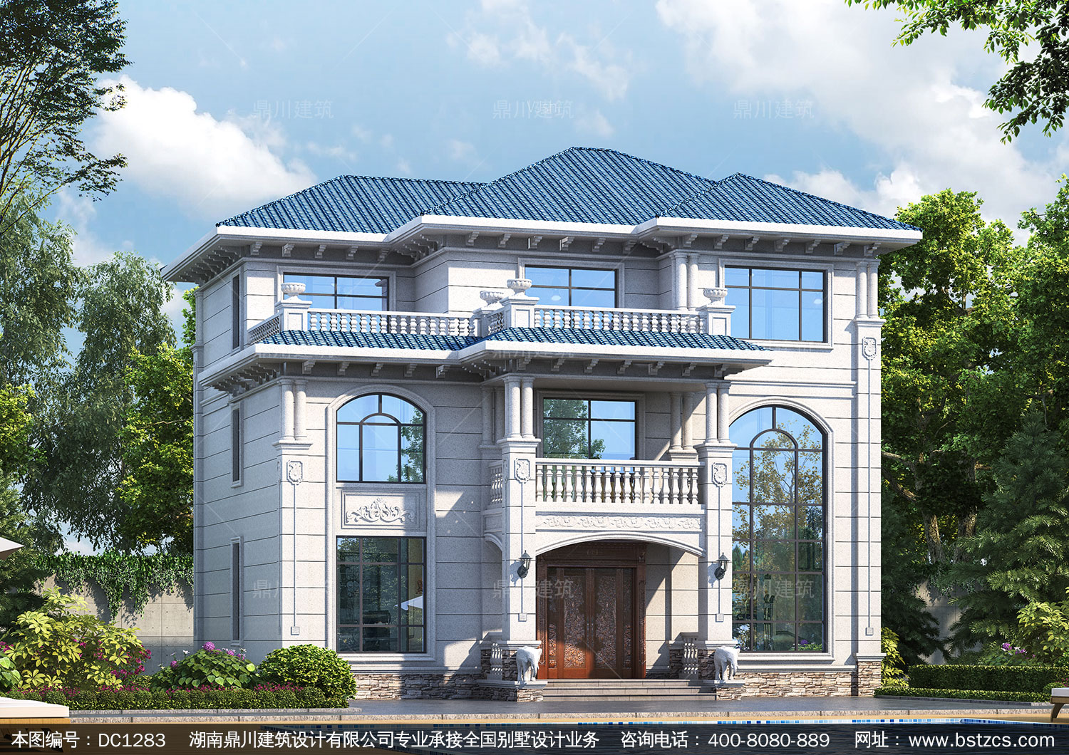 歐式三層帶旋轉樓梯別墅施工圖紙及效果圖_農(nóng)村自建別墅設計,鼎川建筑
