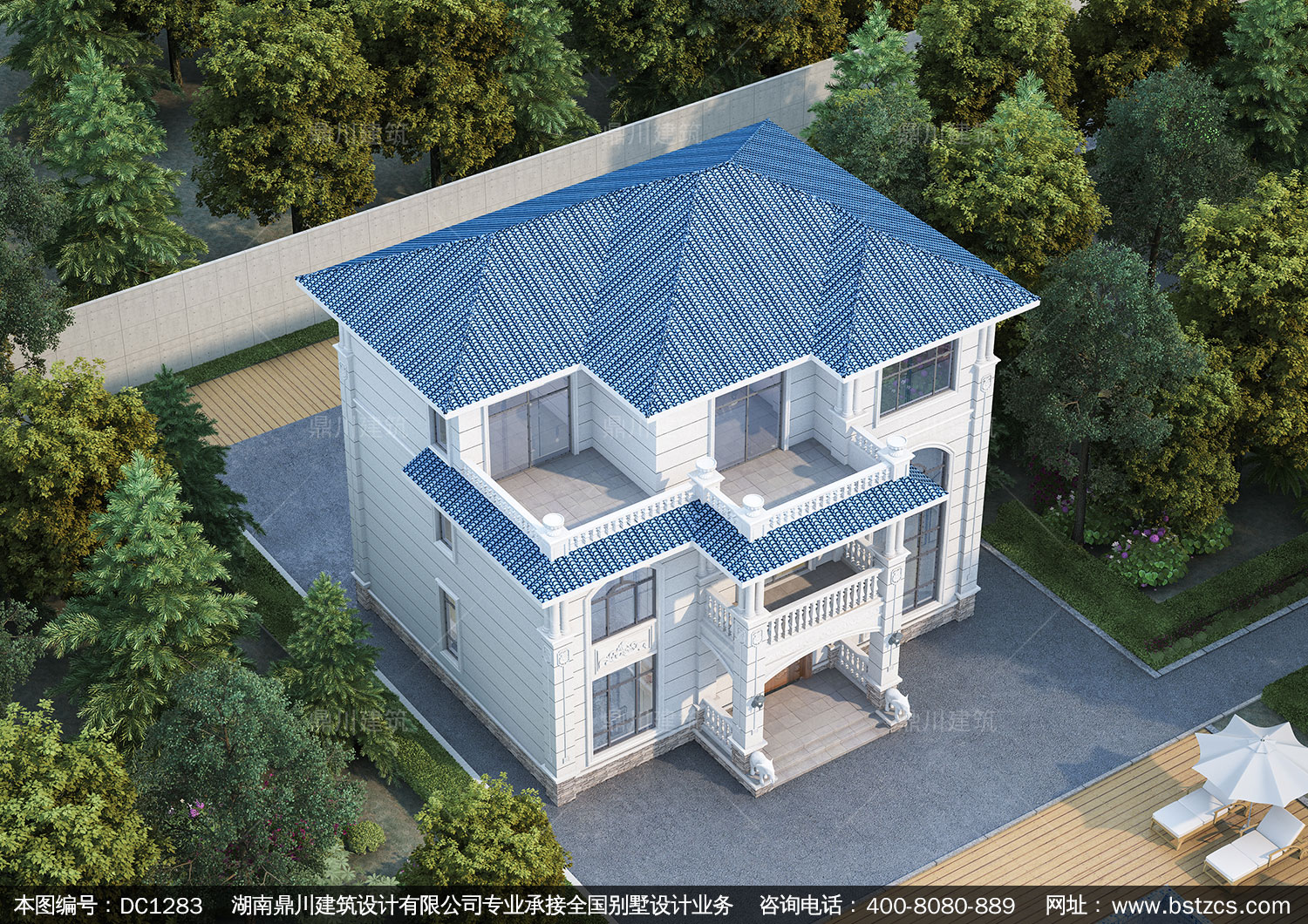 歐式三層帶露臺別墅全套施工圖紙及效果圖_農(nóng)村三層自建房子設計