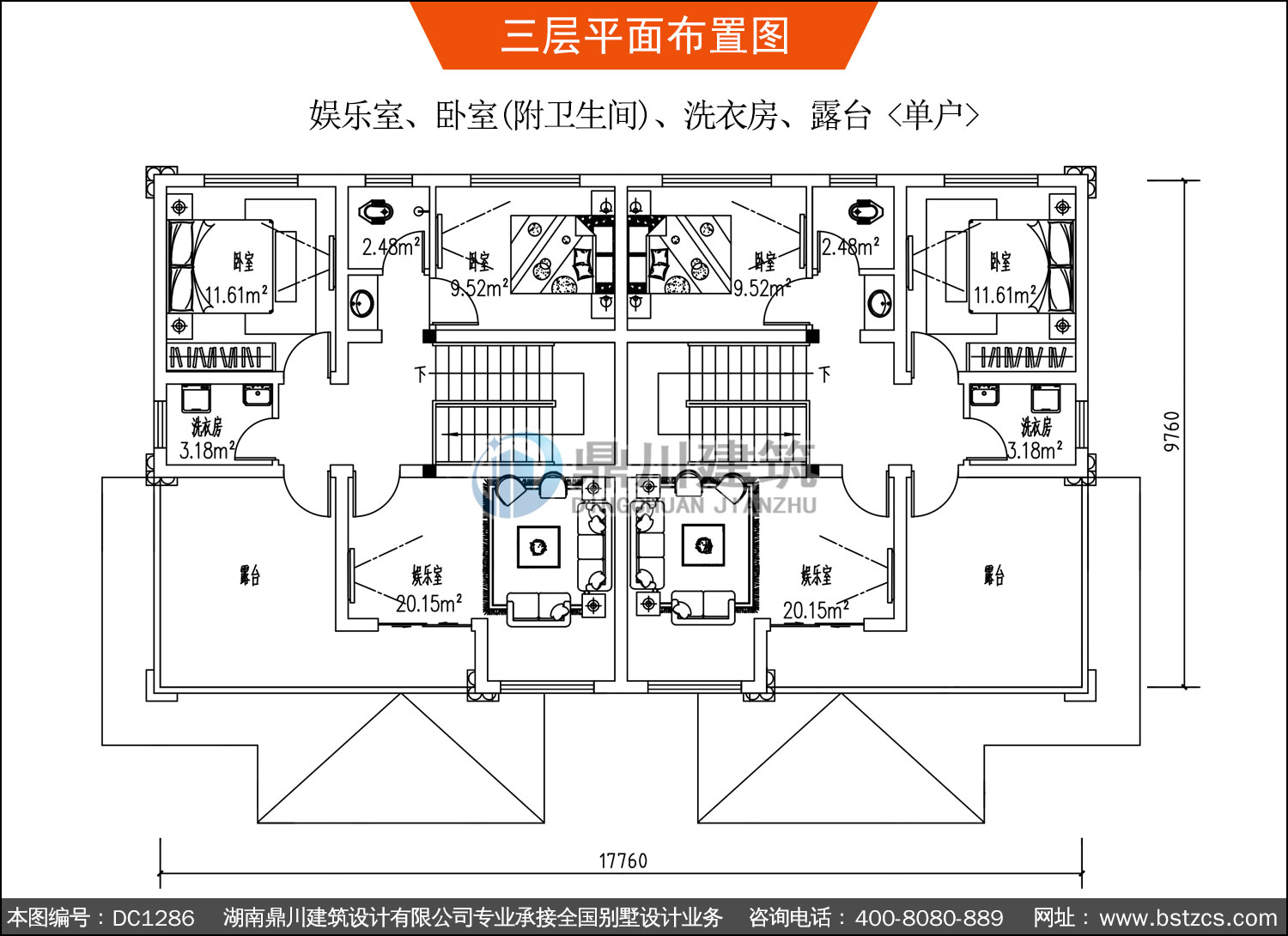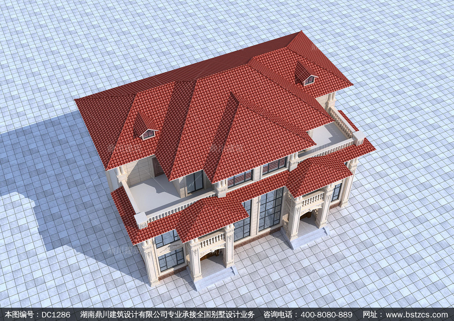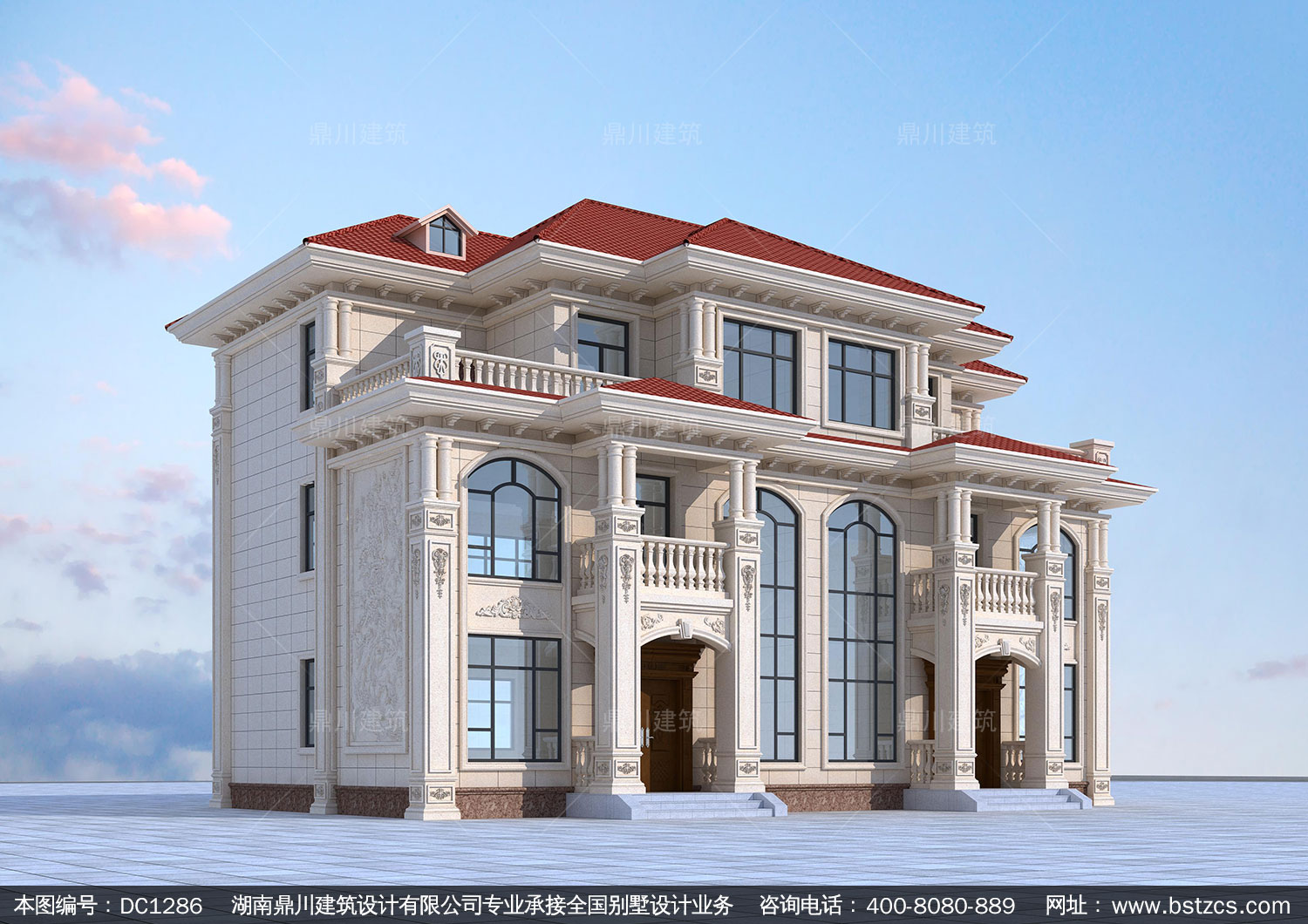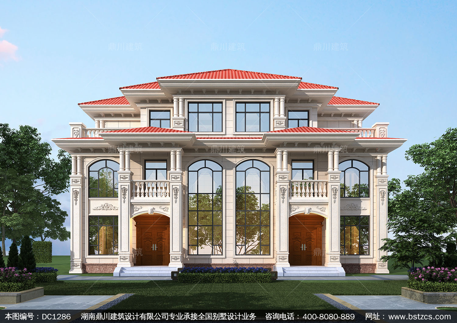 歐式三層雙拼別墅圖紙及外觀效果圖_新農村自建別墅設計,鼎川建