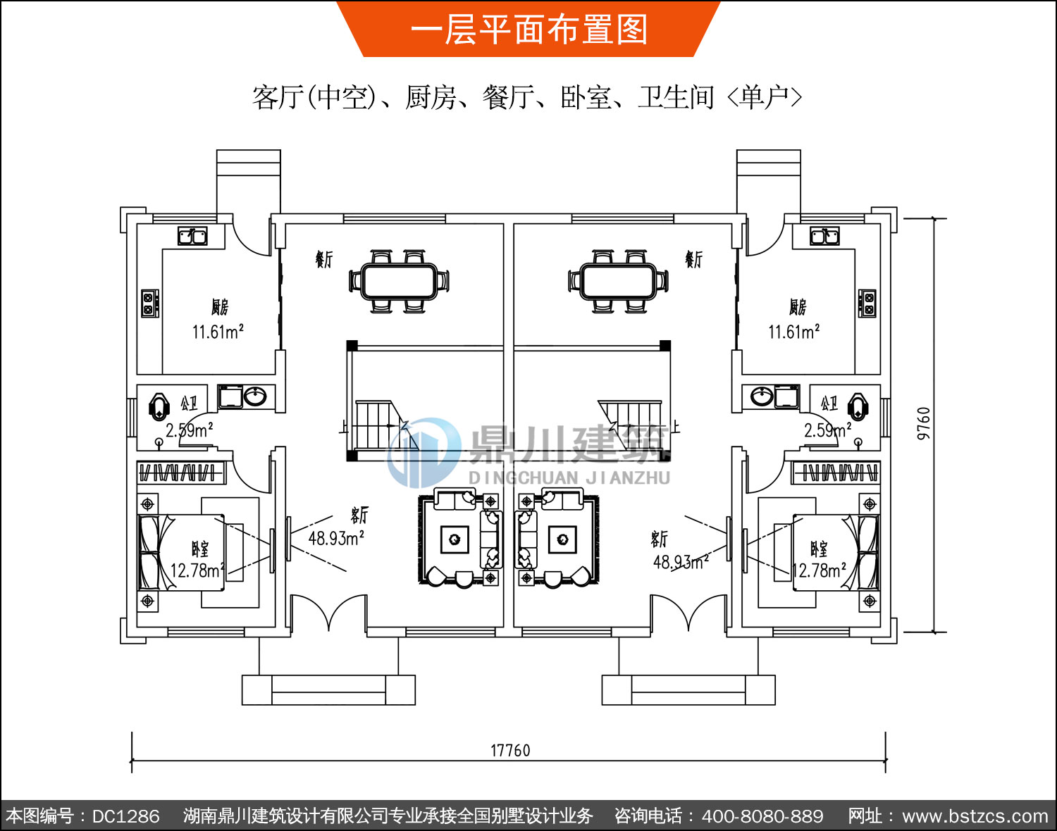 | 一 層: | 客廳(中空)、廚房、餐廳、臥室、衛生間 <單戶> | |||