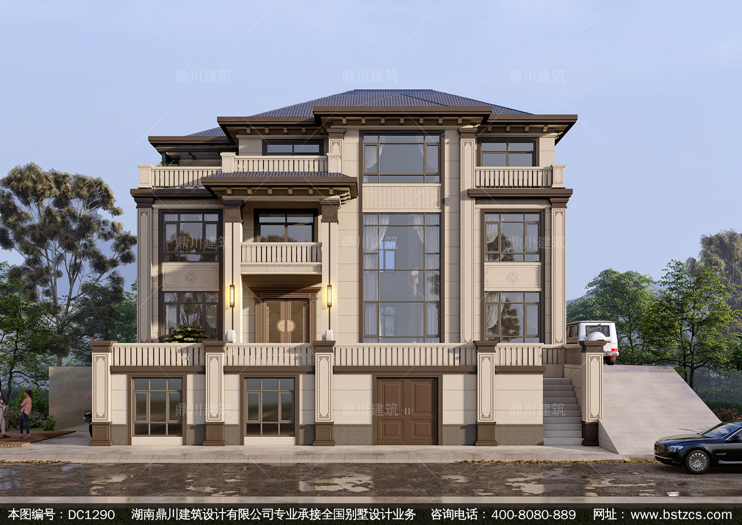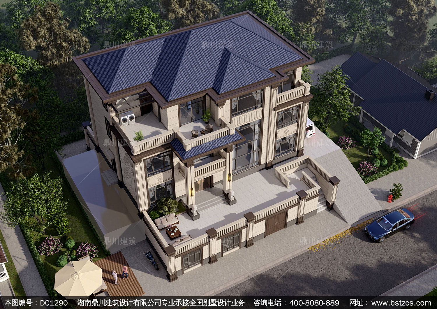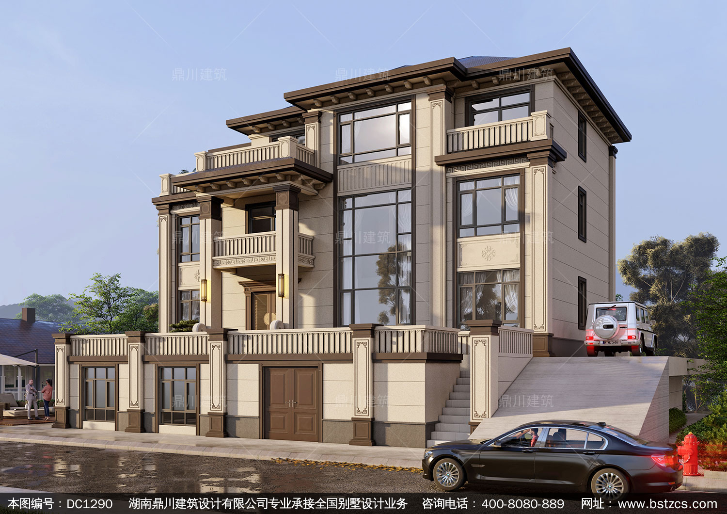 新中式三層帶架空層別墅施工圖紙及效果圖_農(nóng)村自建別墅設(shè)計,鼎川建筑