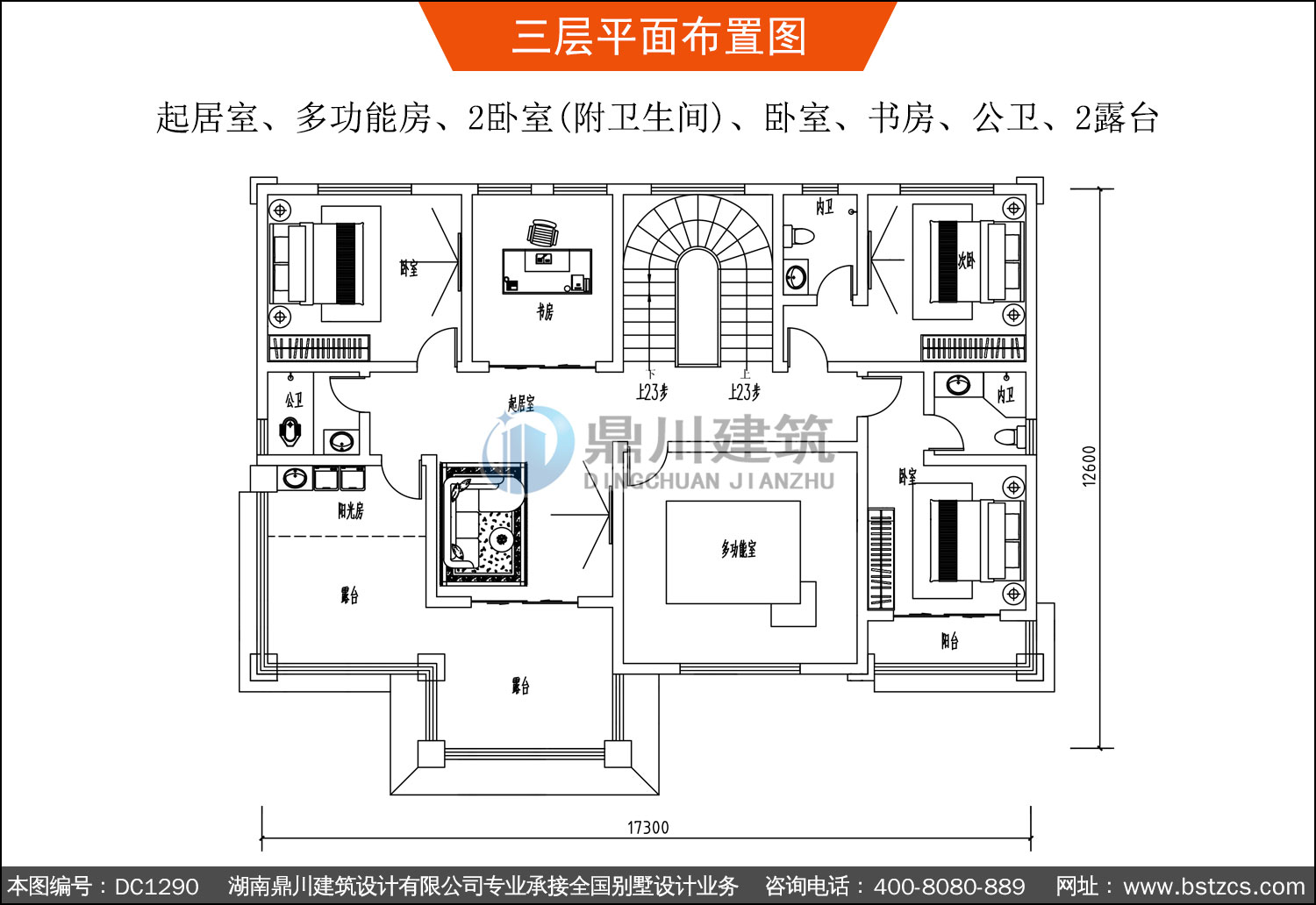 | 三 層: | 起居室、多功能房、2臥室(附衛(wèi)生間)、臥室、書房、公衛(wèi)、2露臺 | |||