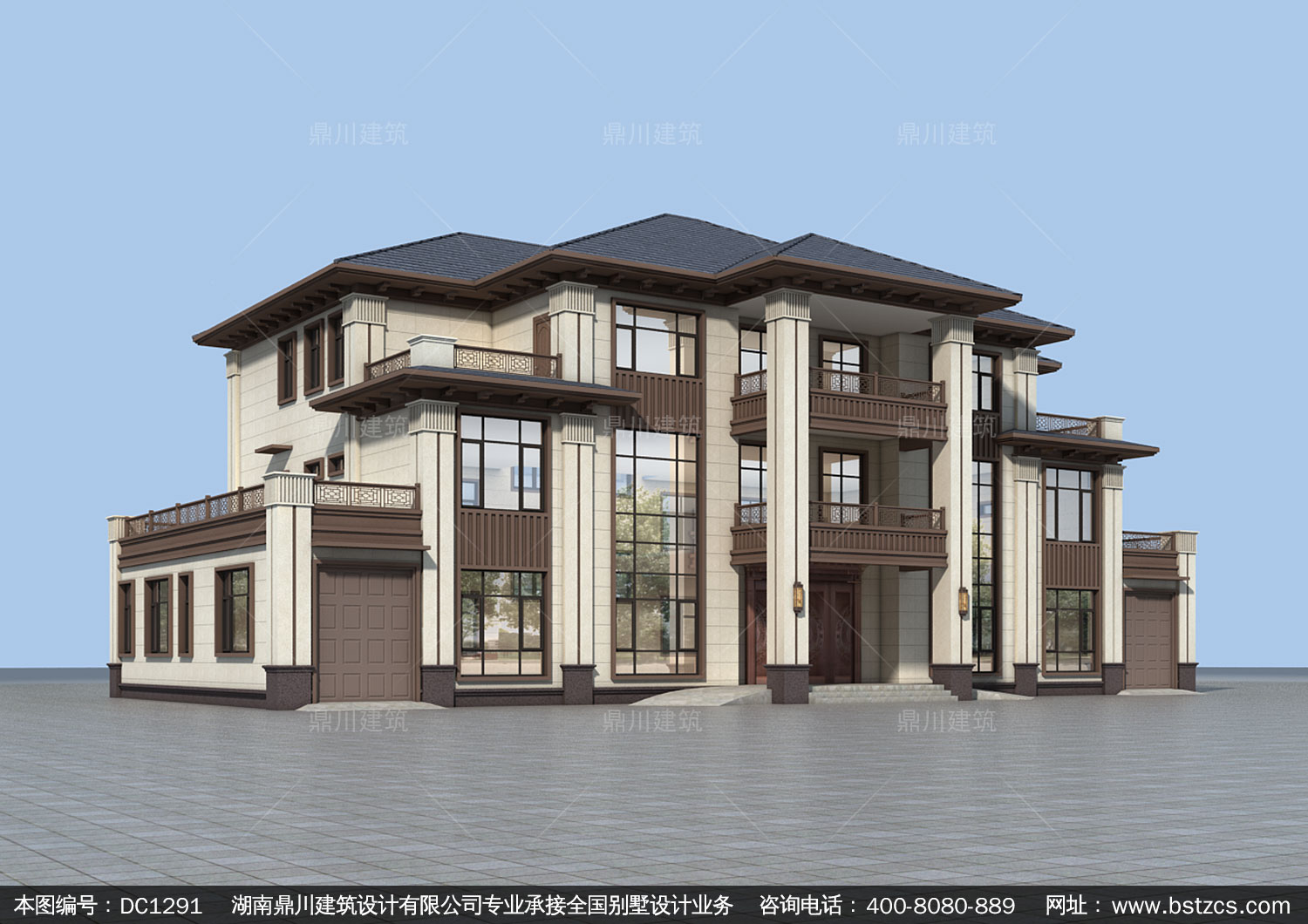 新中式三層雙拼共堂屋別墅施工圖紙及效果圖_農(nóng)村自建別墅設(shè)計(jì),鼎川建筑