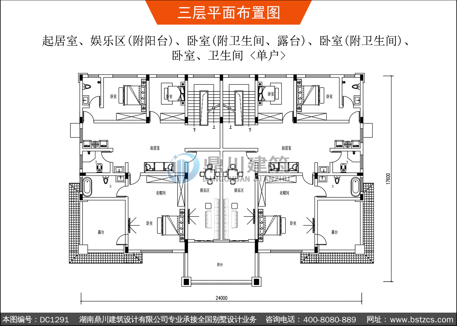 | 二 層: | 起居室、娛樂區(qū)(附陽臺)、臥室(附衛(wèi)生間)、臥室、衛(wèi)生間、露臺 <單戶> | |||
