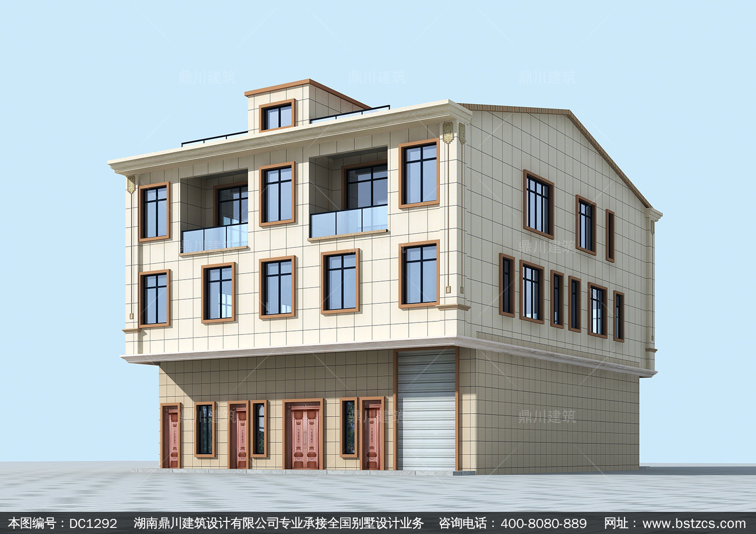簡約三層帶商鋪?zhàn)越ǚ渴┕D紙及效果圖_農(nóng)村自建別墅設(shè)計(jì),鼎川建筑