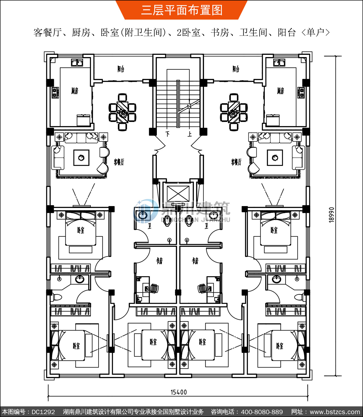 | 三 層: | 客餐廳、廚房、臥室(附衛(wèi)生間)、2臥室、書房、衛(wèi)生間、陽臺 <單戶> | |||