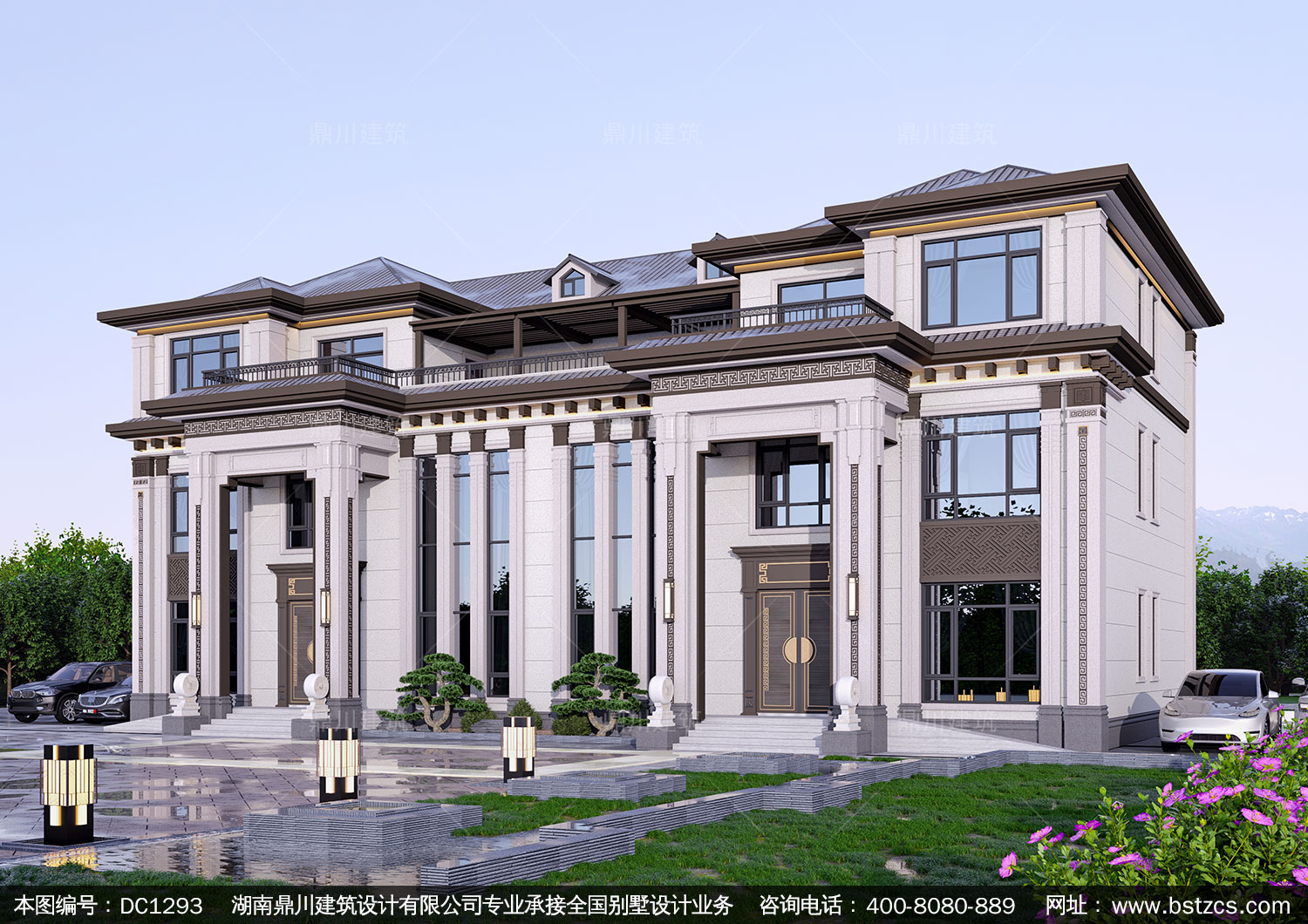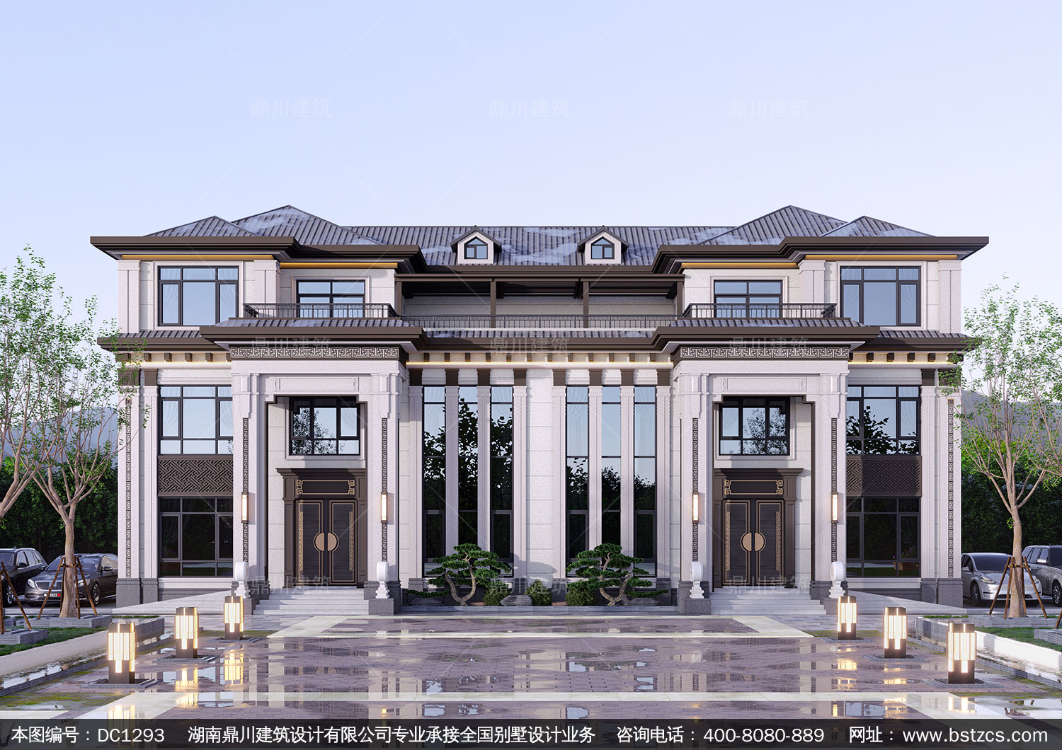 新中式三層兄弟雙拼別墅施工圖紙及效果圖_農村自建別墅設計,鼎川建筑