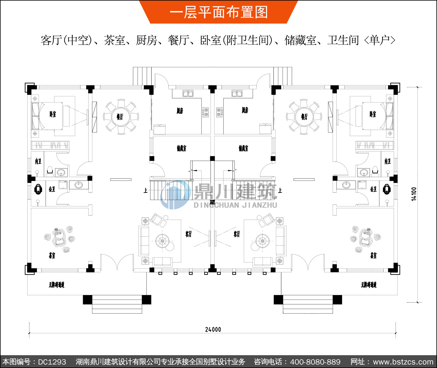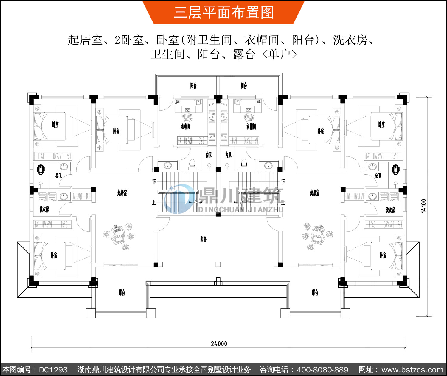 豪華三層復式雙拼別墅圖紙及效果圖_雙拼別墅設計圖紙,鼎川建筑