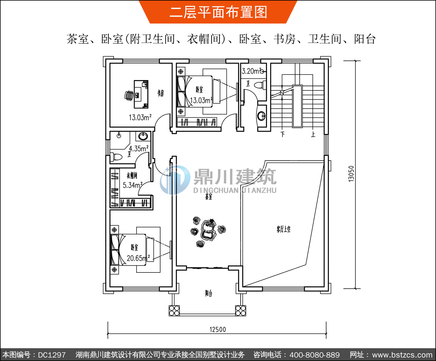 | 二 層: | 茶室、臥室(附衛(wèi)生間、衣帽間)、臥室、書房、衛(wèi)生間、陽臺 | |||