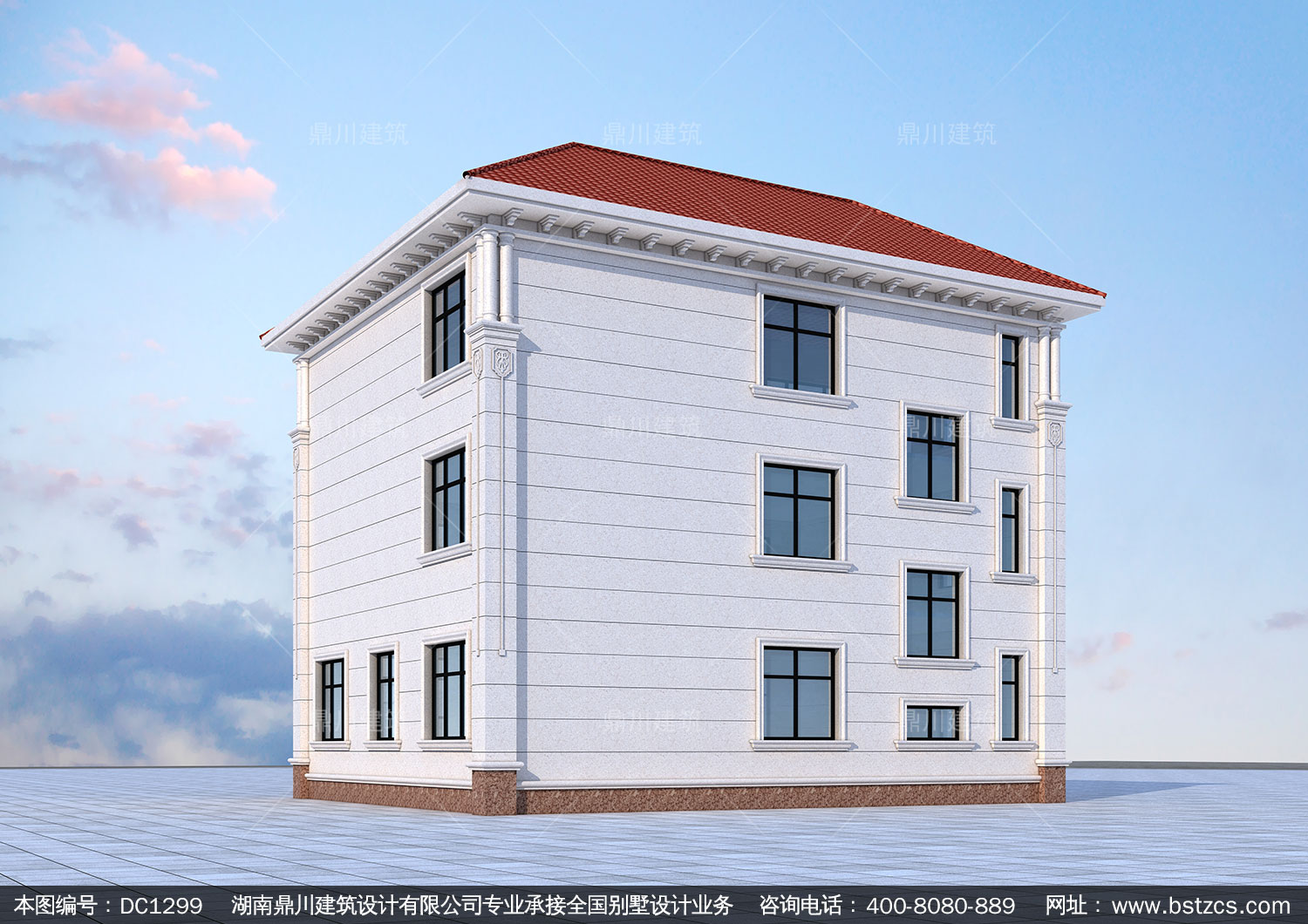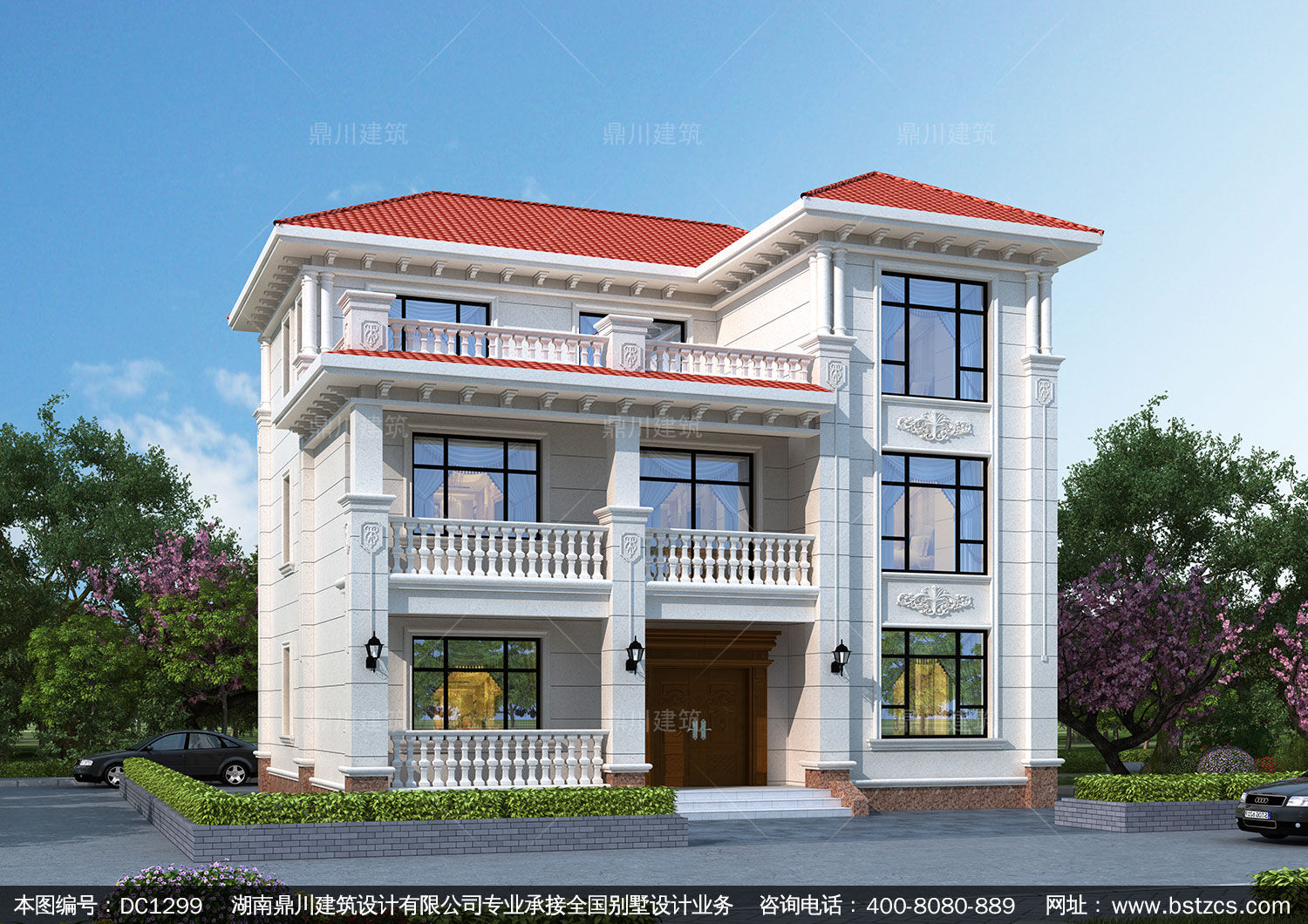 三層帶車庫別墅設計效果圖及全套施工圖-農村自建房設計-鼎川建
