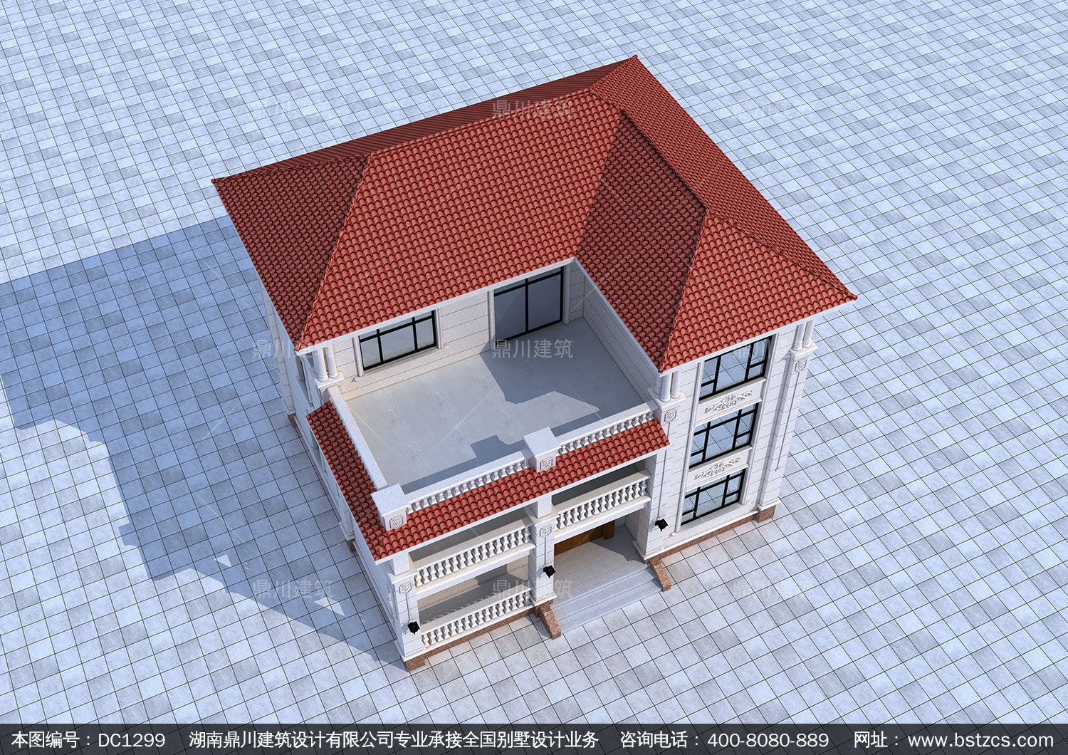 三層簡歐帶露臺別墅施工圖紙及外觀效果圖_新農村自建房設計,鼎