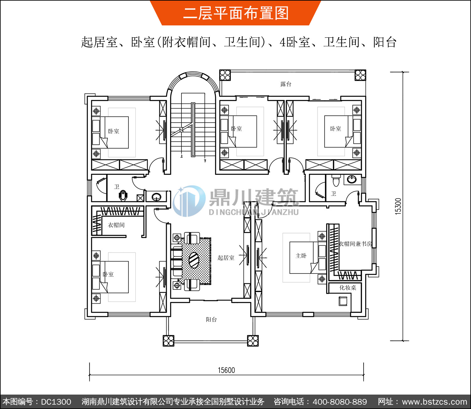 | 二 層: | 起居室、臥室(附衣帽間、衛(wèi)生間)、4臥室、衛(wèi)生間、陽(yáng)臺(tái) | |||