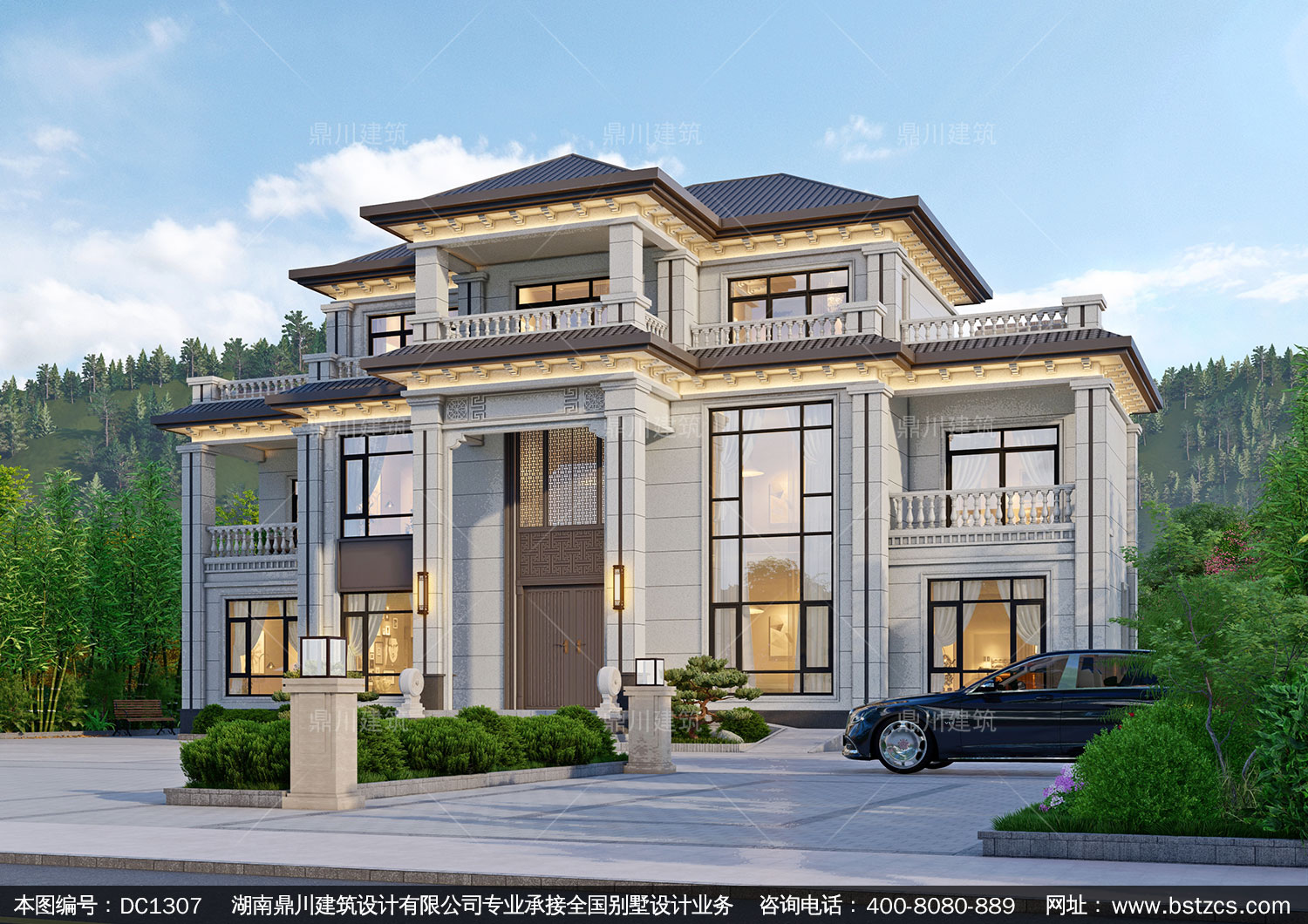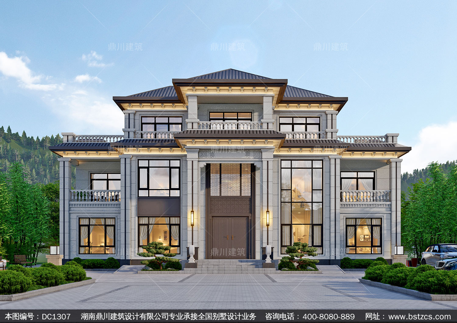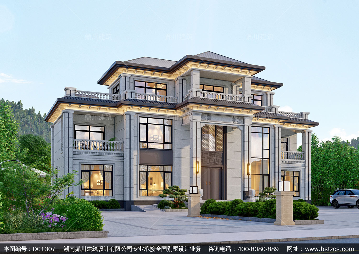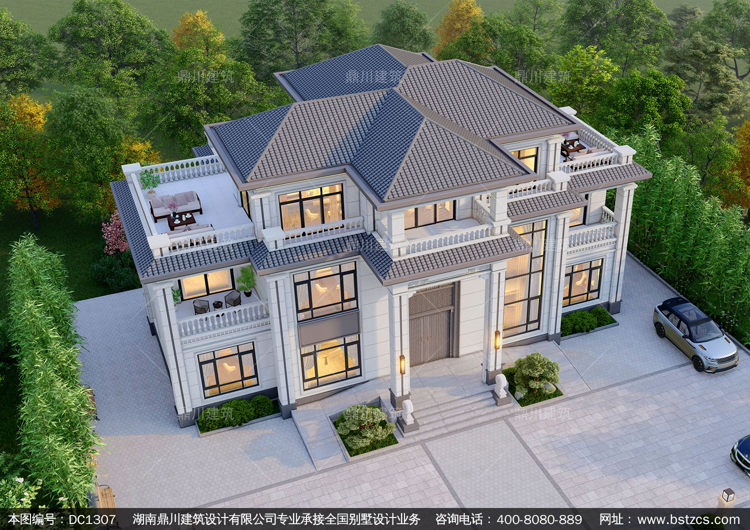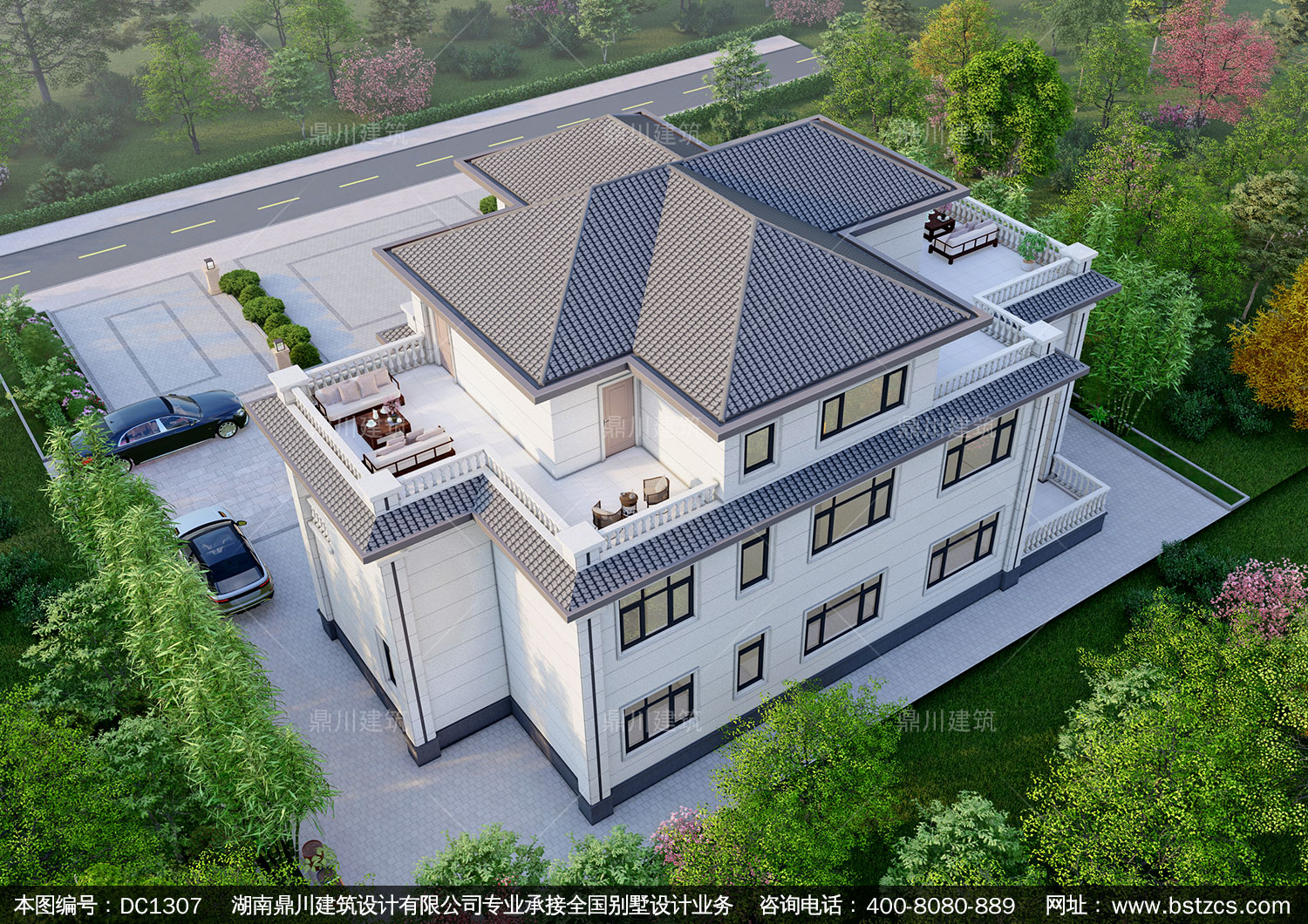新中式三層帶旋轉(zhuǎn)樓梯別墅施工圖紙及效果圖_農(nóng)村自建別墅設(shè)計,鼎川建筑