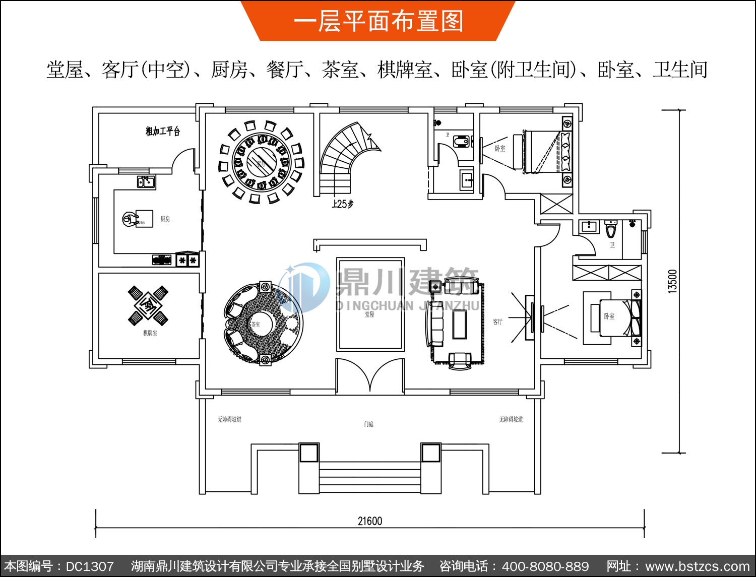 | 一 層: | 堂屋、客廳(中空)、廚房、餐廳、茶室、棋牌室、臥室(附衛(wèi)生間)、臥室、衛(wèi)生間 | |||