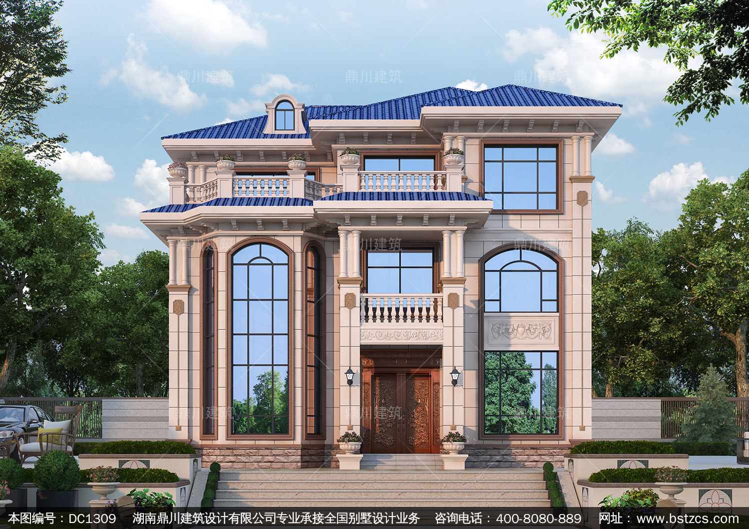 歐式三層復式別墅施工圖紙及效果圖_農村自建別墅設計,鼎川建筑