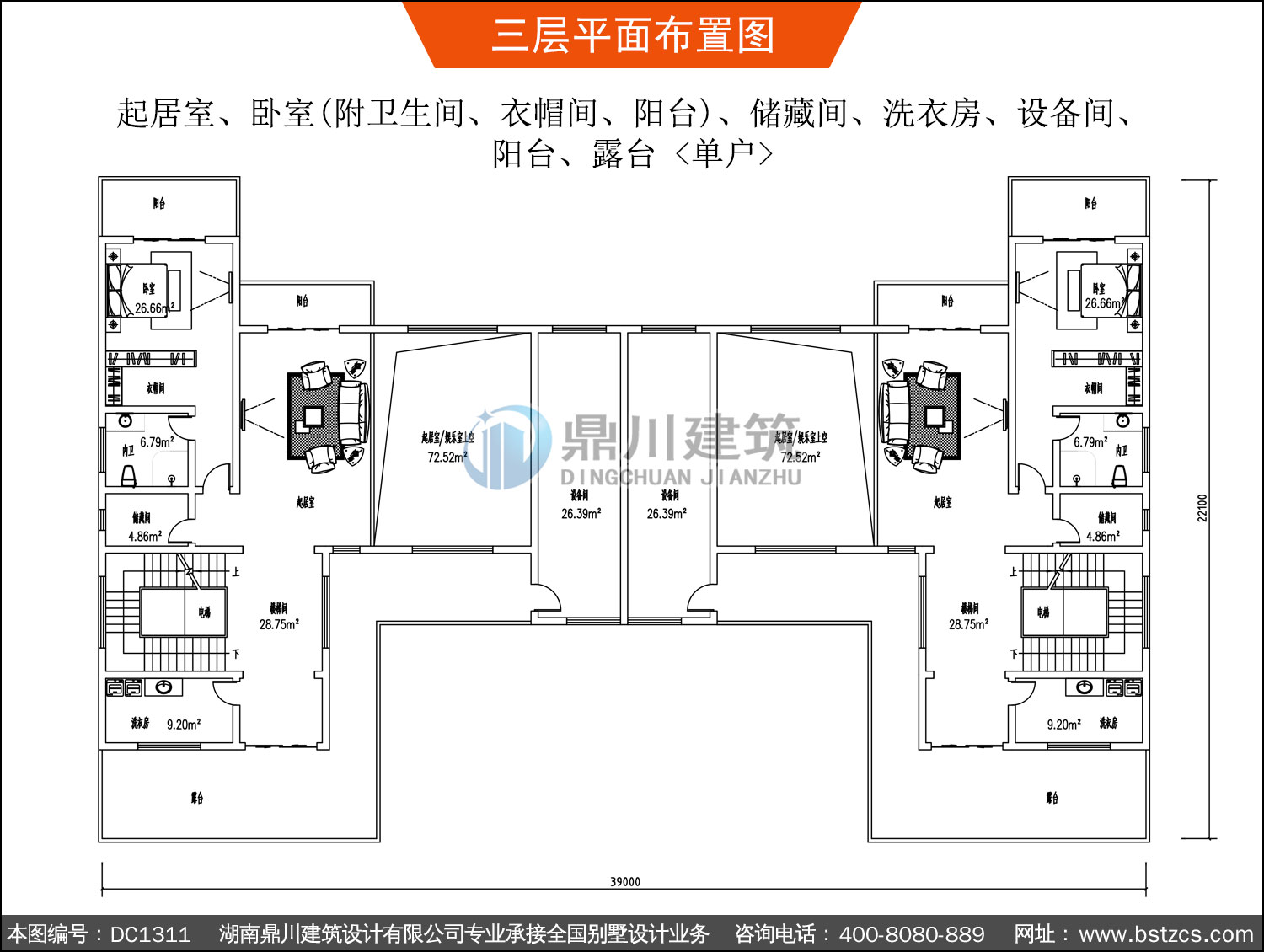 現代三層共堂屋雙拼別墅施工圖紙及效果圖_農村自建別墅設計,鼎